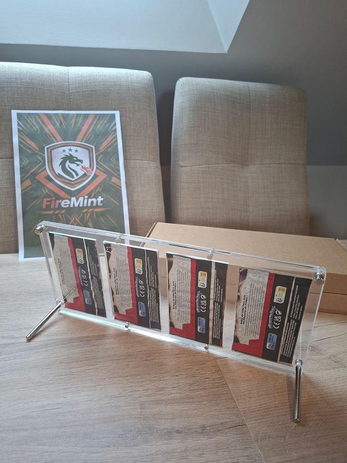 Bonjour, Je vends ce lot de 2 présentoirs de la marque Firemint en acrylique aimanté, spécialement conçu pour 4 boosters Pokémon. 💰 19 € pièces sois 38€ les 2 présentoirs 4 boosters ✅ S’adapte parfaitement aux boosters Pokémon ✅ Maintien optimal : ne bouge pas ✅ Idéal pour exposer et protéger votre collection Caractéristiques : → 🔆 Protection UV à 100 % → 💥 Protection anti-choc et contre l’humidité → ✨ Ultra-transparence (100 %) pour sublimer vos boosters 📦 Chaque présentoir en acrylique est emballé individuellement dans son emballage d’origine. 📩 N’hésitez pas à me contacter pour toute question !