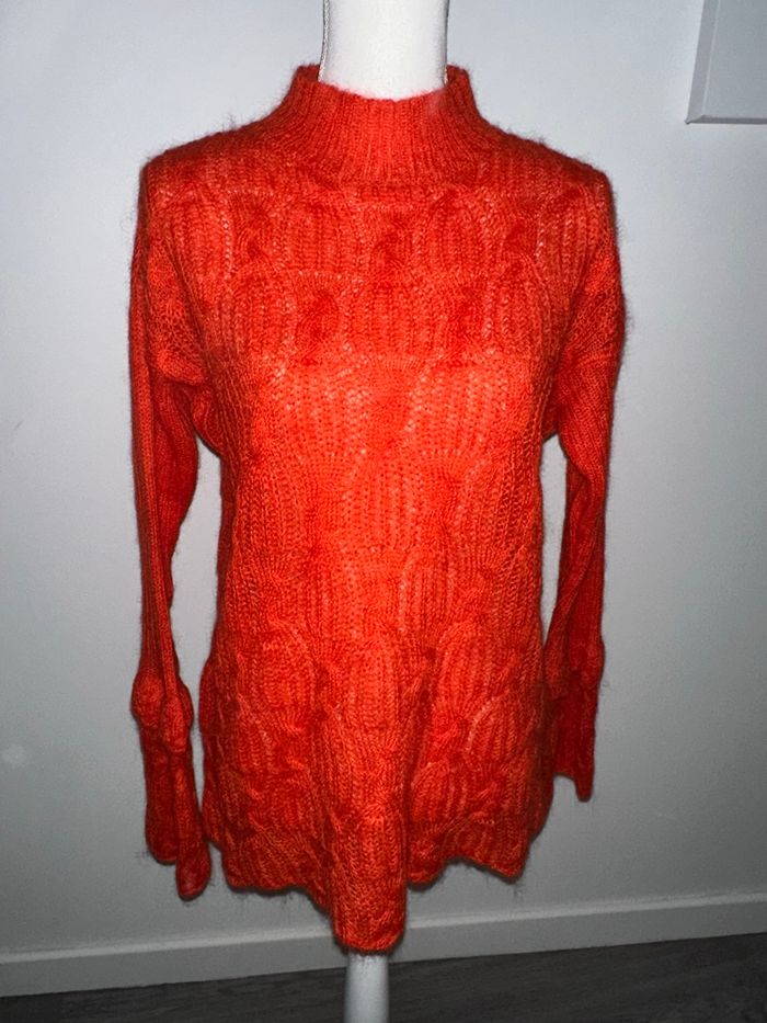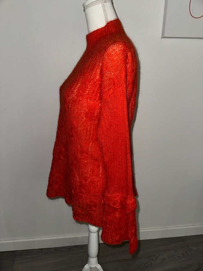 Pull - Excellent état - Taille 38 équivalent M Dimensions en bas de l’annonce - Couleur orange - Maille ajourée - La Redoute - Ultra doux et chaud - Manches larges - Mohair, polyamide, acrylique Dimensions: - 53cm niveau épaules - 55 à 70cm niveau aisselles - 70cm de long