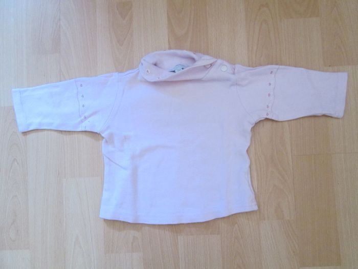 tee shirt fille 6 mois marque kimbaloo couleur rose motif sur le col et les manches