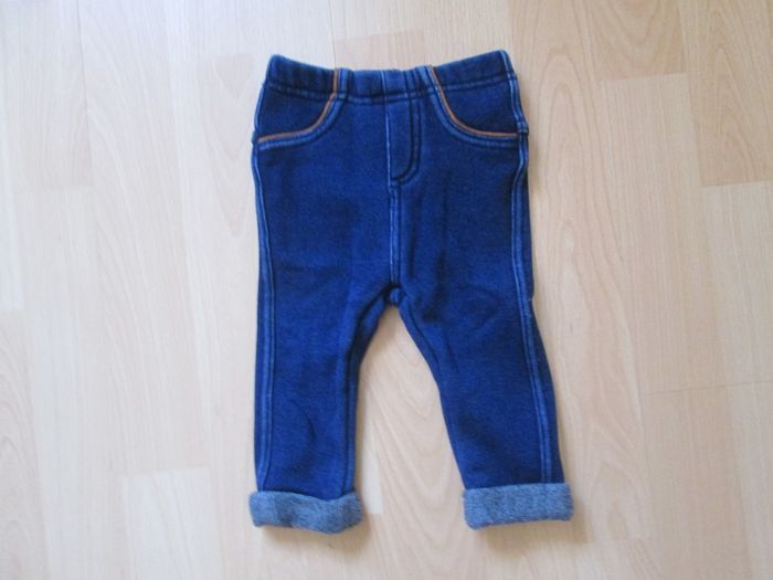 pantalon imitation jean fille couleur bleu 6 mois elastique a la taille marque grain de ble