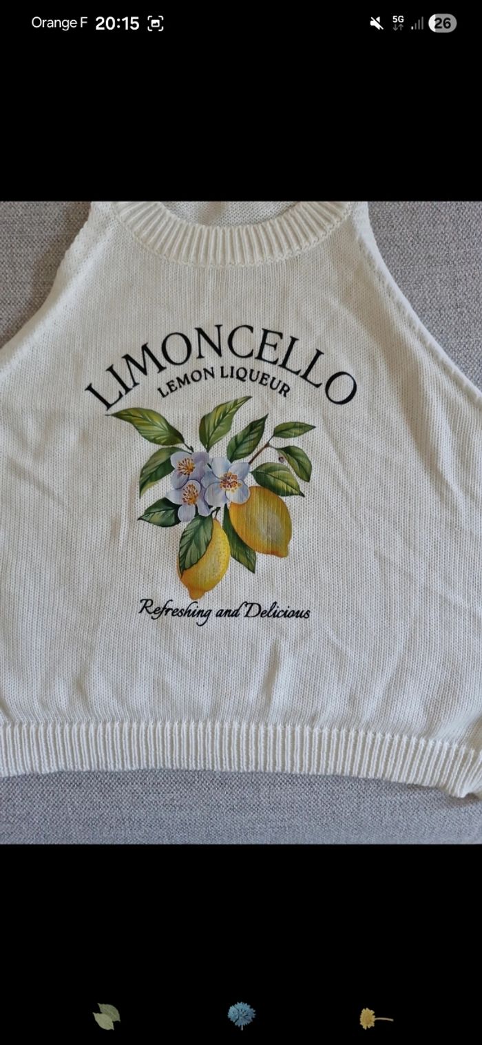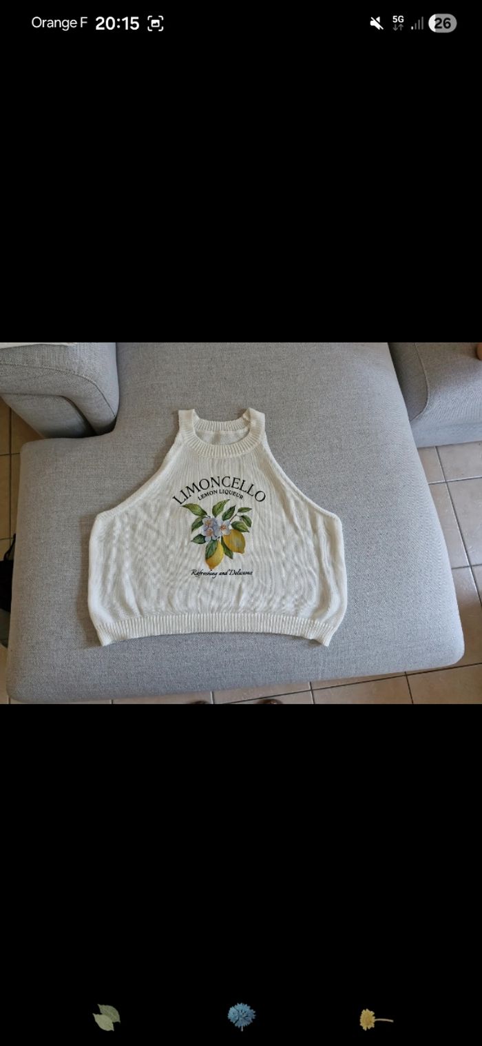 Débardeur en polyester, imprimé Citron. XXL Hauteur : 47cm Largeur aisselles a aisselles : 49cm