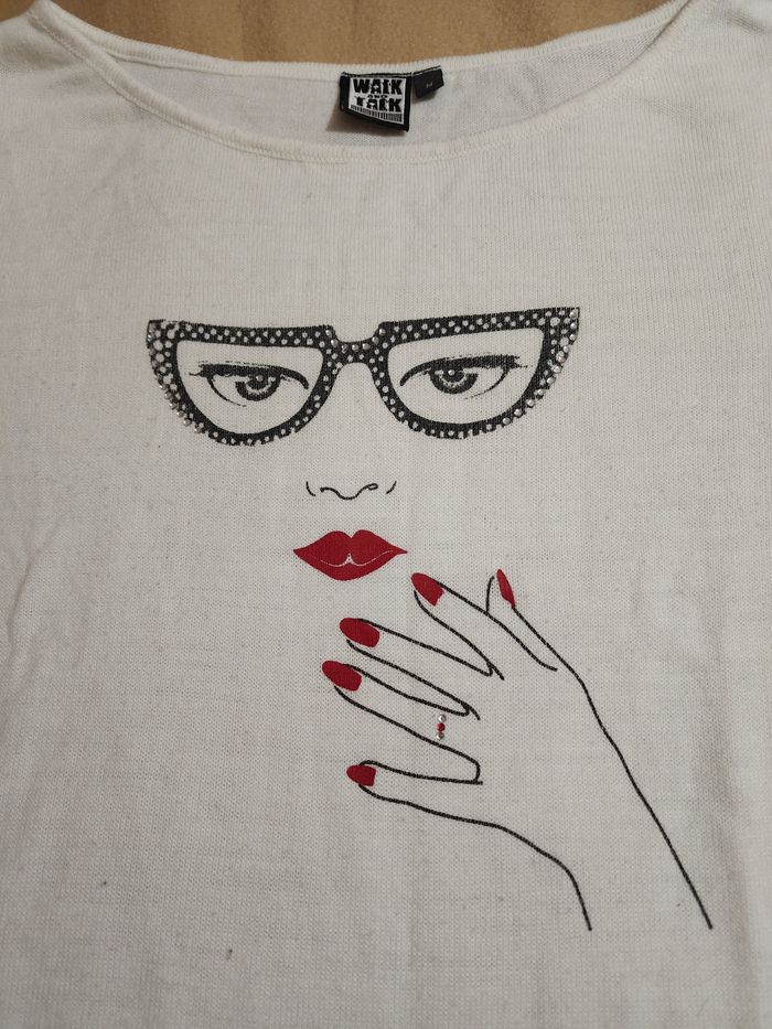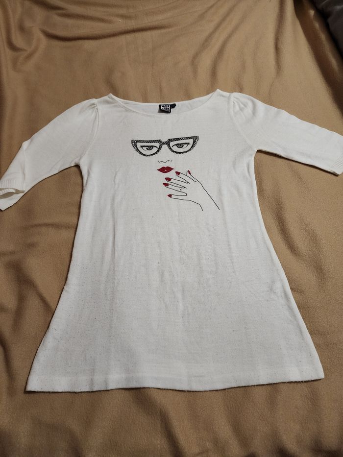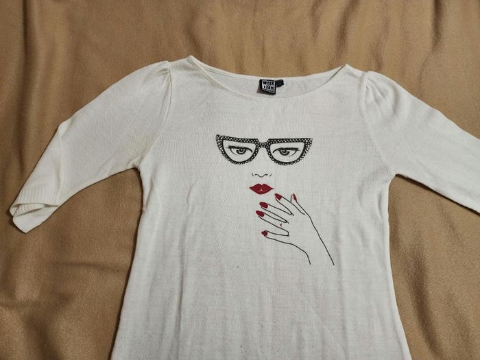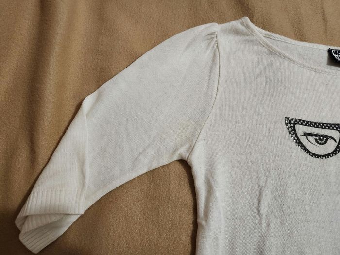 Pull léger motif "Lunettes" Il y a des minis bouloches sur tout le pull surtout le bas et il y a des tâches sous les bras (voir les photos) État satisfaisant