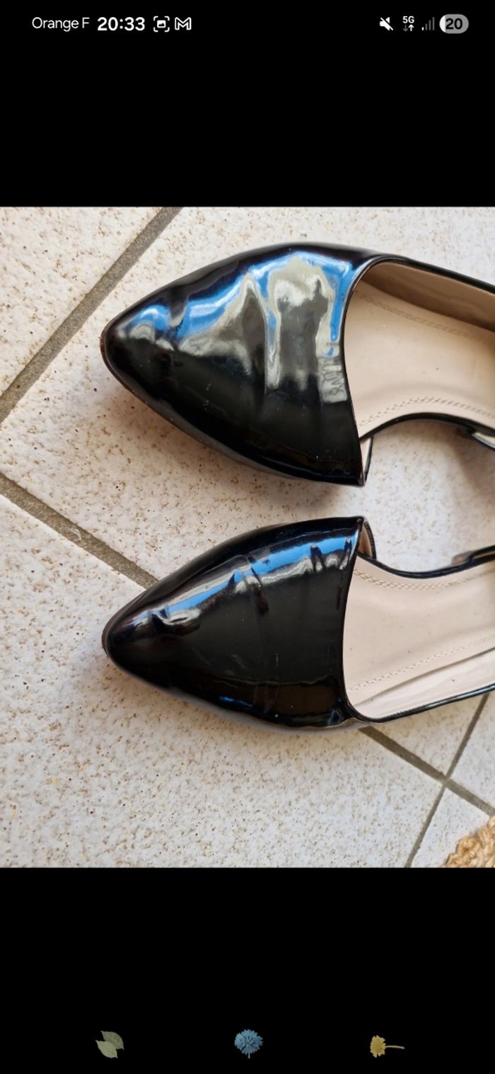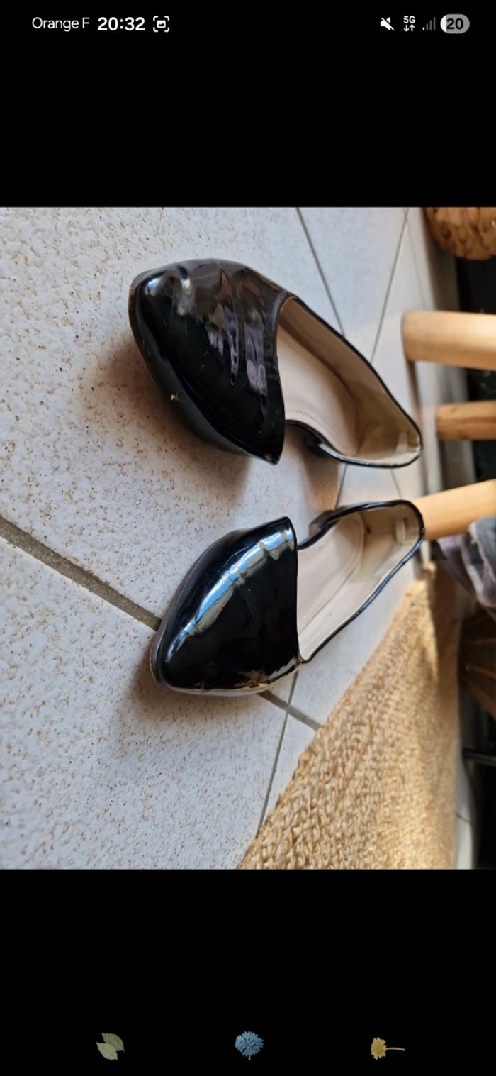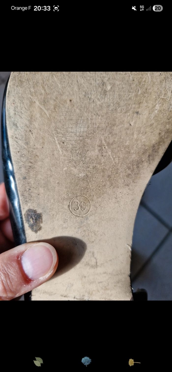 Chaussure sans marque, noir brillant, portées beaucoup de fois. Taille 39.