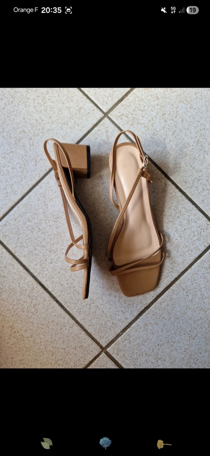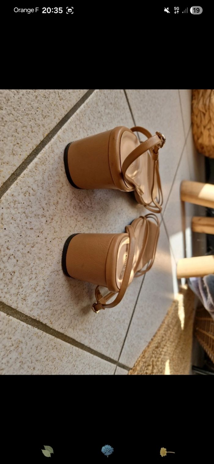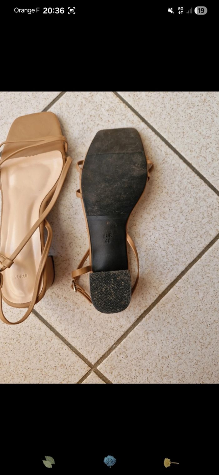 Chaussure ouverte, beige, sans marque, portées quelques fois. 6cm de talon. Taille 40