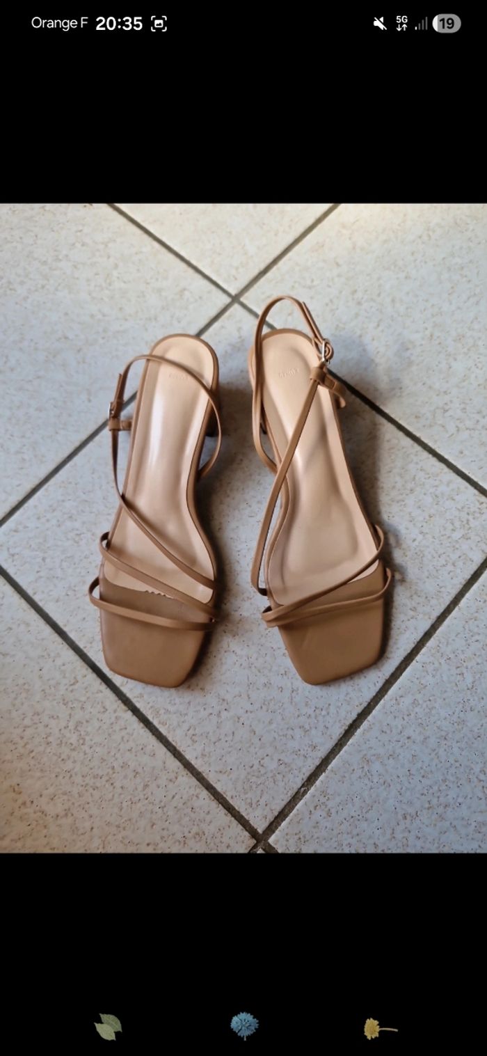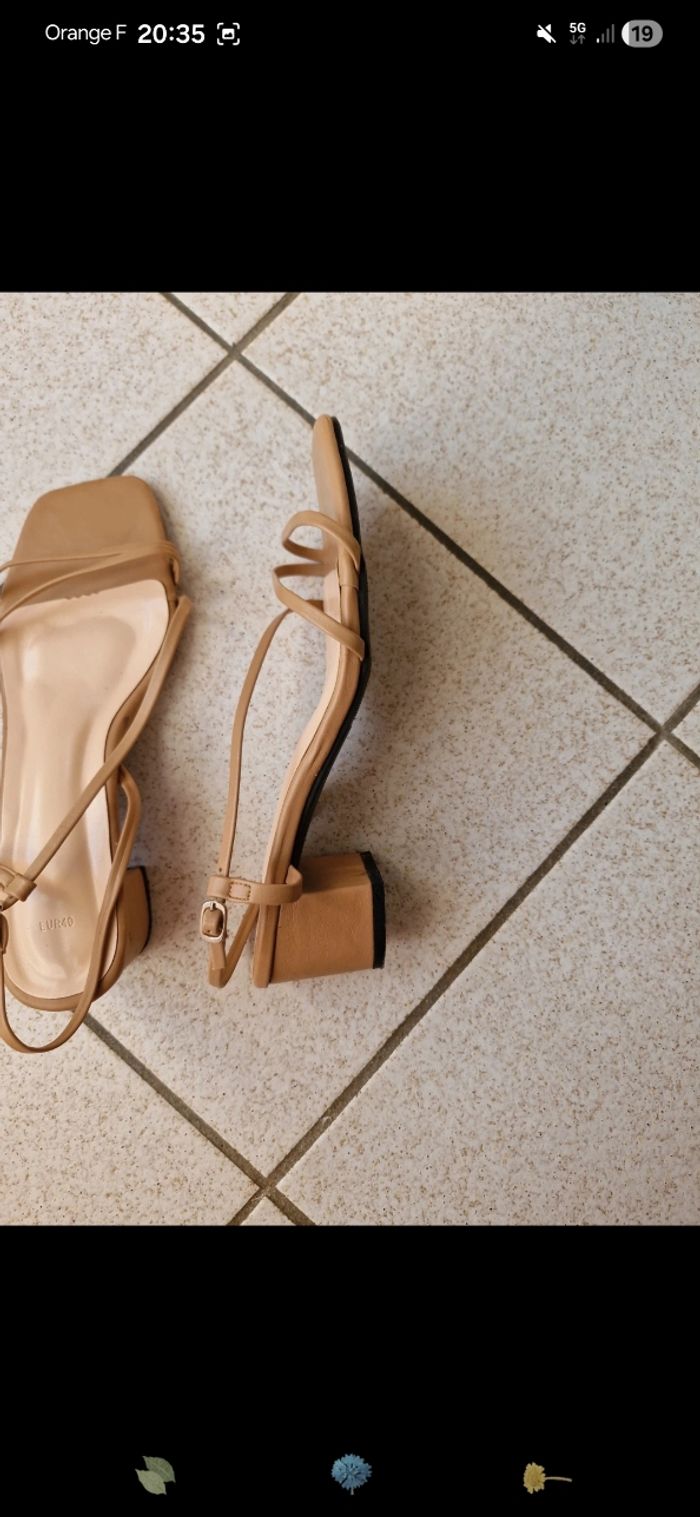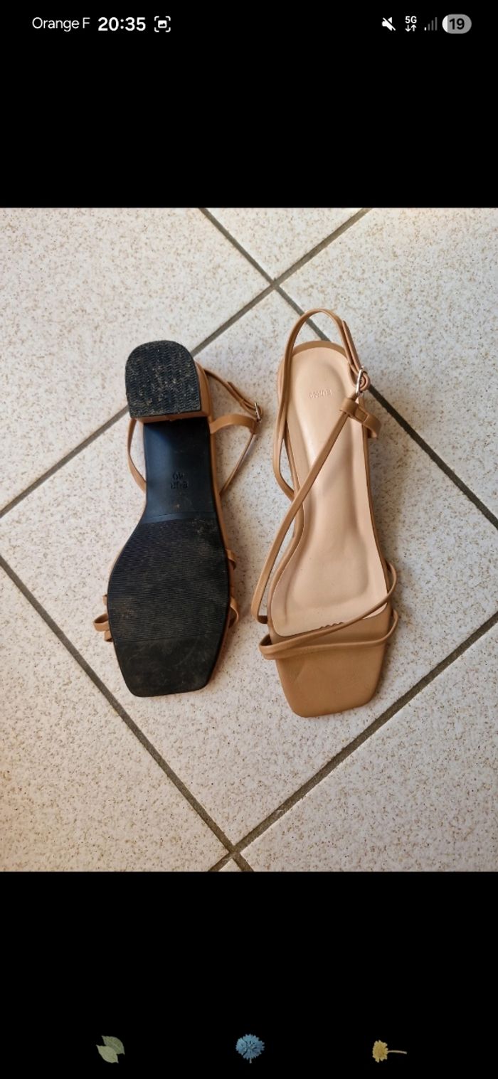 Chaussure ouverte, beige, sans marque, portées quelques fois. 6cm de talon. Taille 40