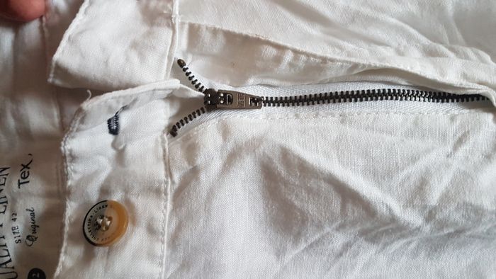 Pantalon fin femme Taille 42 Couleur blanc 2 poches à boutons avant et 2 poches à boutons à l'arrière Fermeture éclair et bouton Léger et agréable à porter Marque Tex