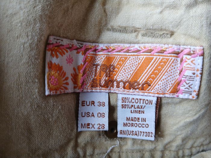 Jupe beige avec motifs très légers de fleurs hawaïennes plus claires. Marque : TRF Summer Longueur : environ 45 cm Taille 38 Bon état
