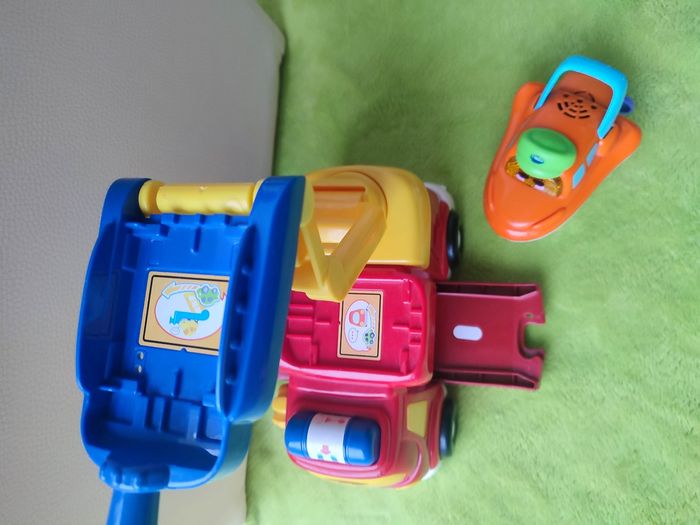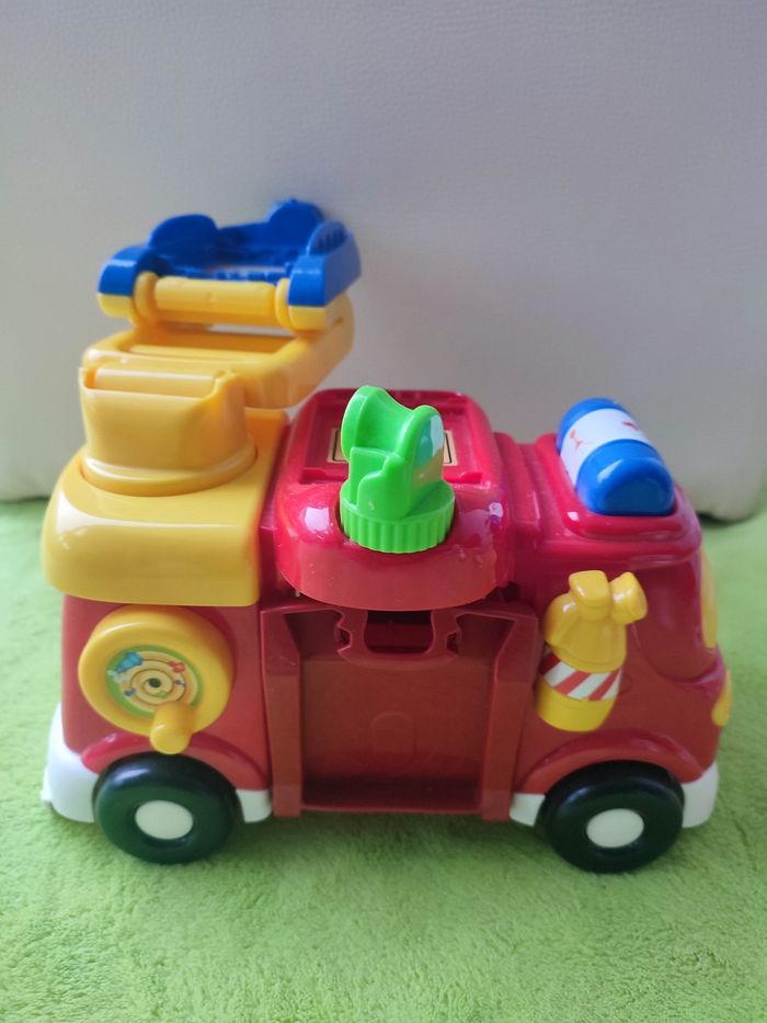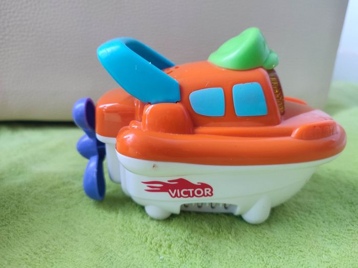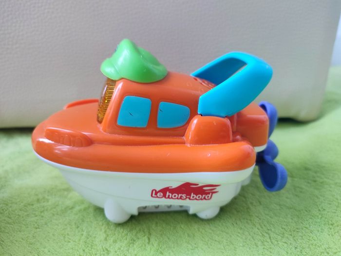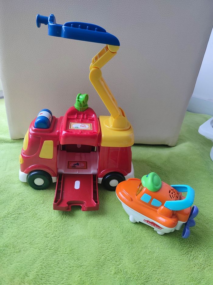 Camion pompiers tut tut bolides Très bon état , quelques marques par endroits. Vendu avec un hors bord, victor Qui chante et s illumine Quelques marques