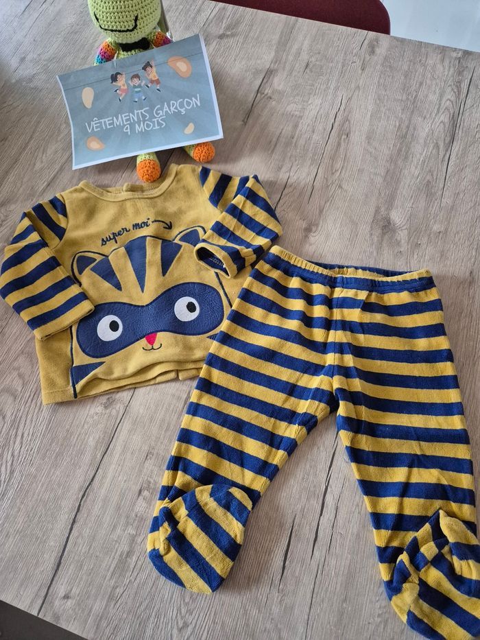 Pyjama 2 pièces TAPE A L'OEIL (pantalon retenu au haut de pyjama par des pressions intérieurs) Taille : 9 mois En bon état Maman précautionneuse, vêtements lavés puis stockés dans caisse plastique. 💰 Faites des économies supplémentaires en créant des lots et déclenchez des réductions 😉 📦 Envoi rapide et soigné