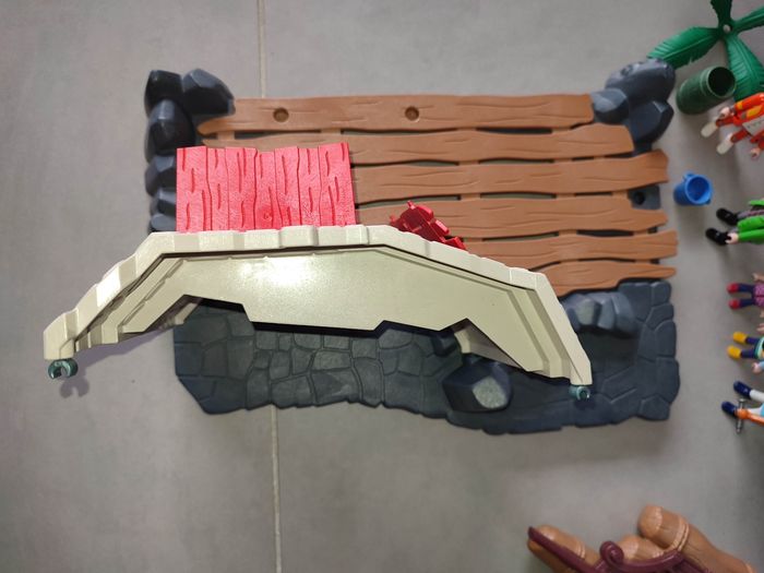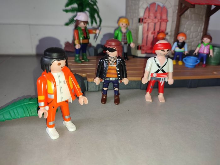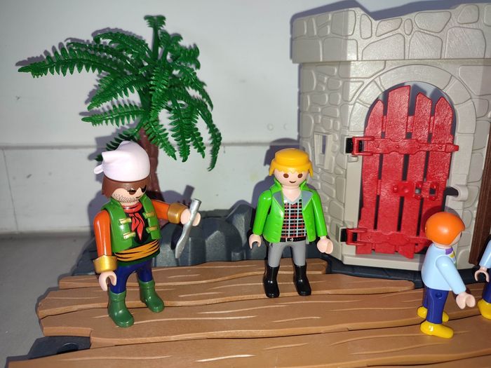 Playmobil pirate Avec plusieurs bonhommes de tous types. Tres bon état, Un crochet qui tiens la voile du radeau est cassé mais la voile tiens tout de même