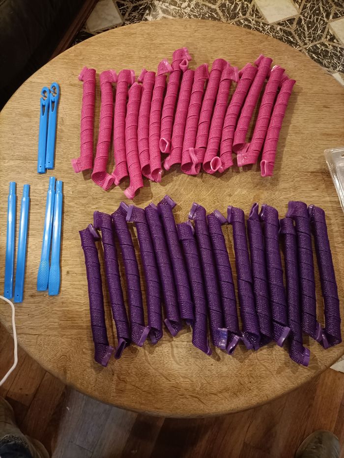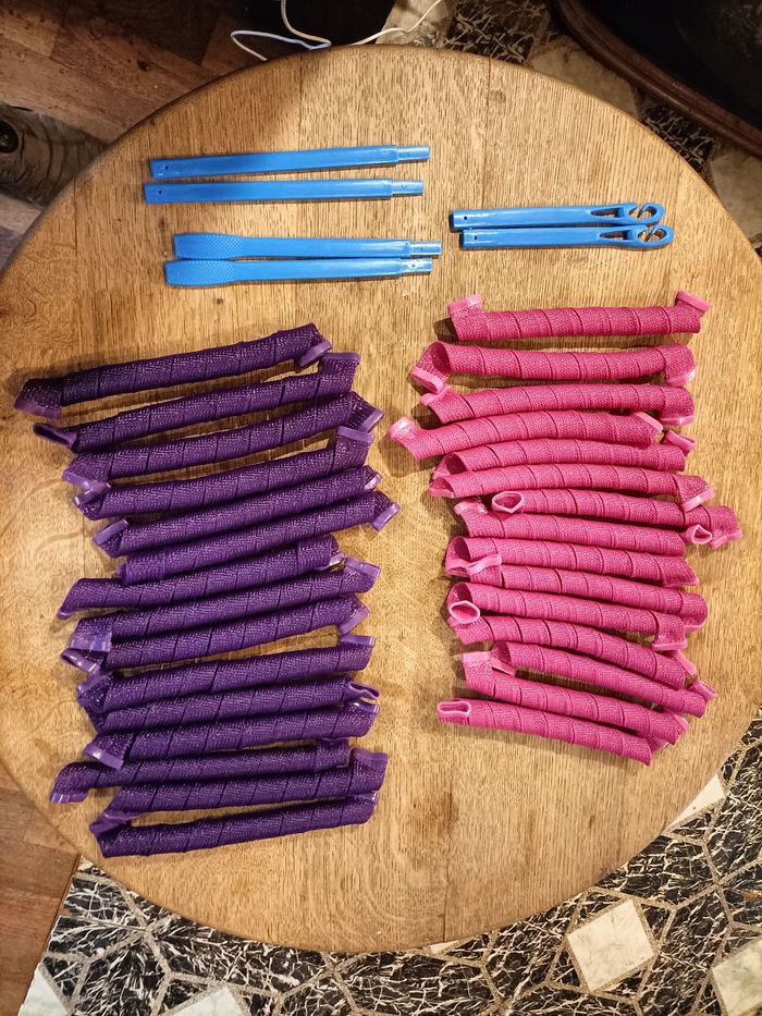 Bigoudi sans chaleur neuf jamais utilisée.. Rose et mauve. Plastique emballage d'origine 30pièce de 55cm