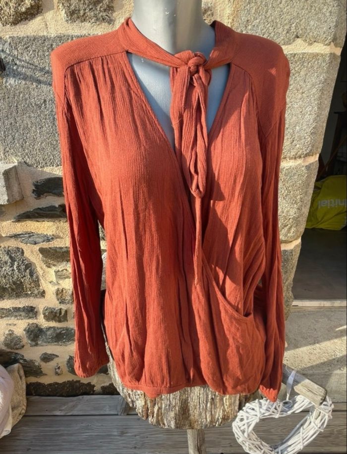 Blouse col lavallière teracotta - Stillwater neuve  - photo numéro 1