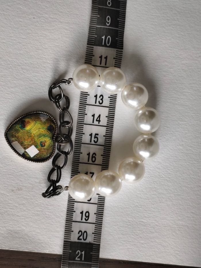Bracelet vintage en perle et pendentif cœur 18 19 cm - photo numéro 7