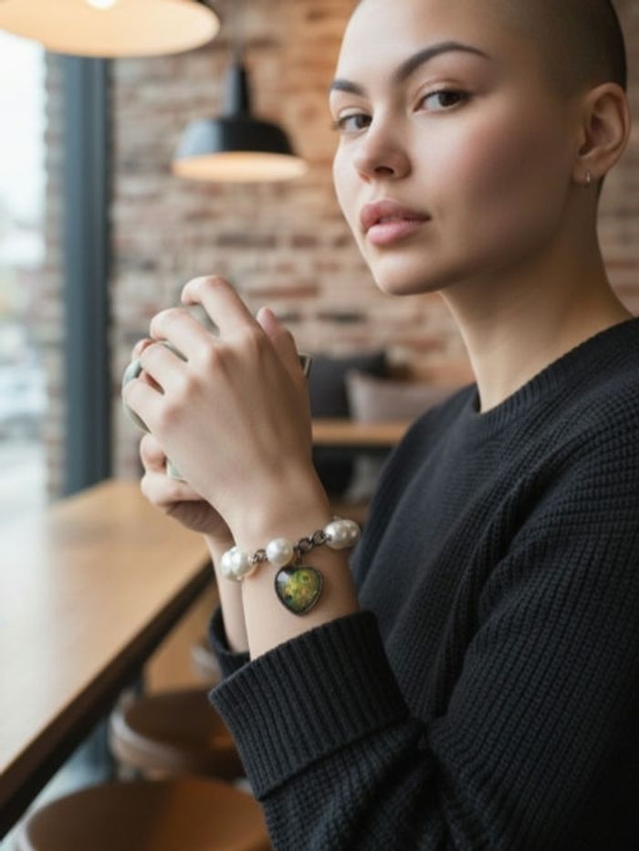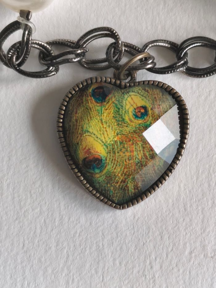 Bracelet vintage en perle et pendentif cœur 18 19 cm - photo numéro 4