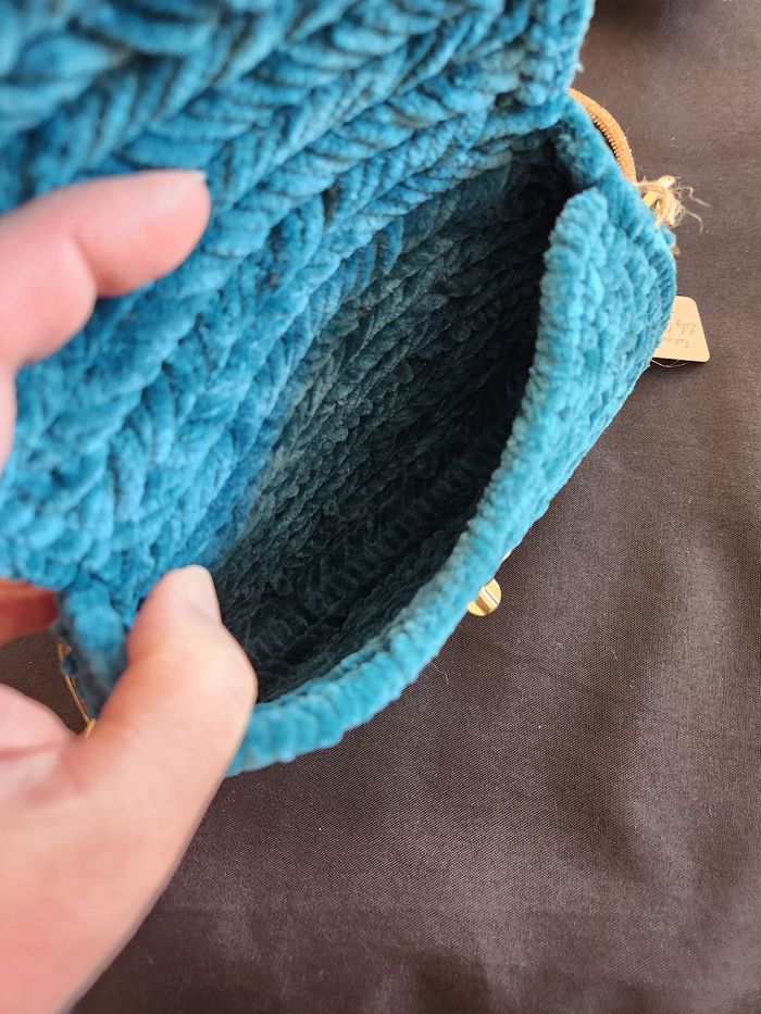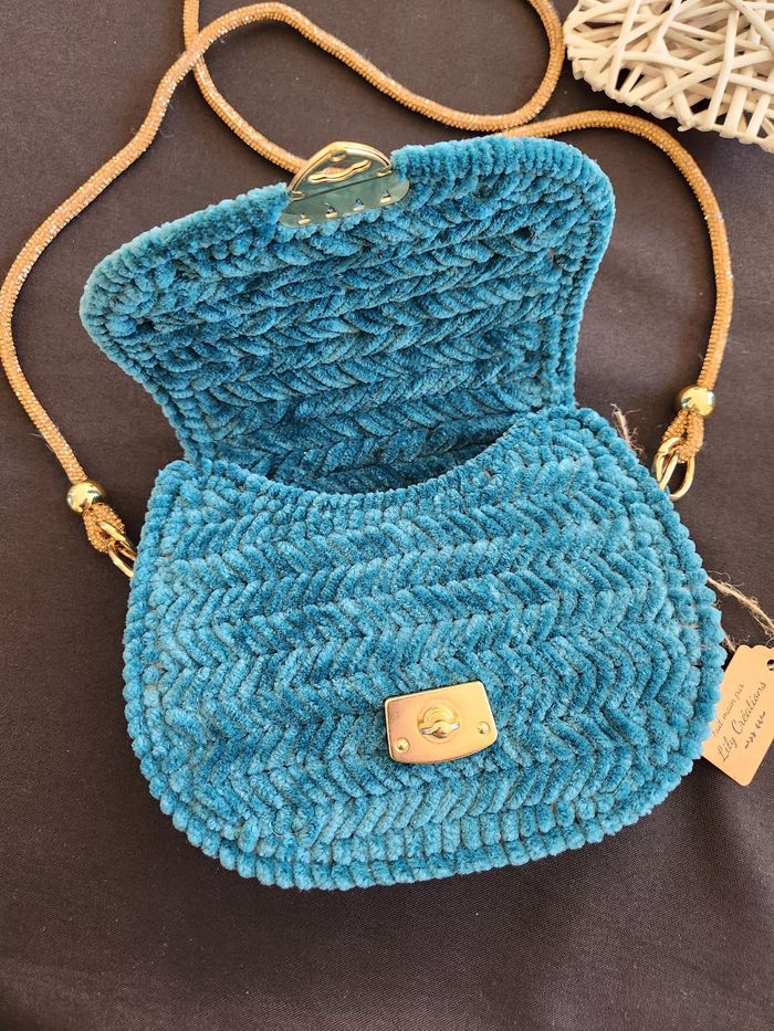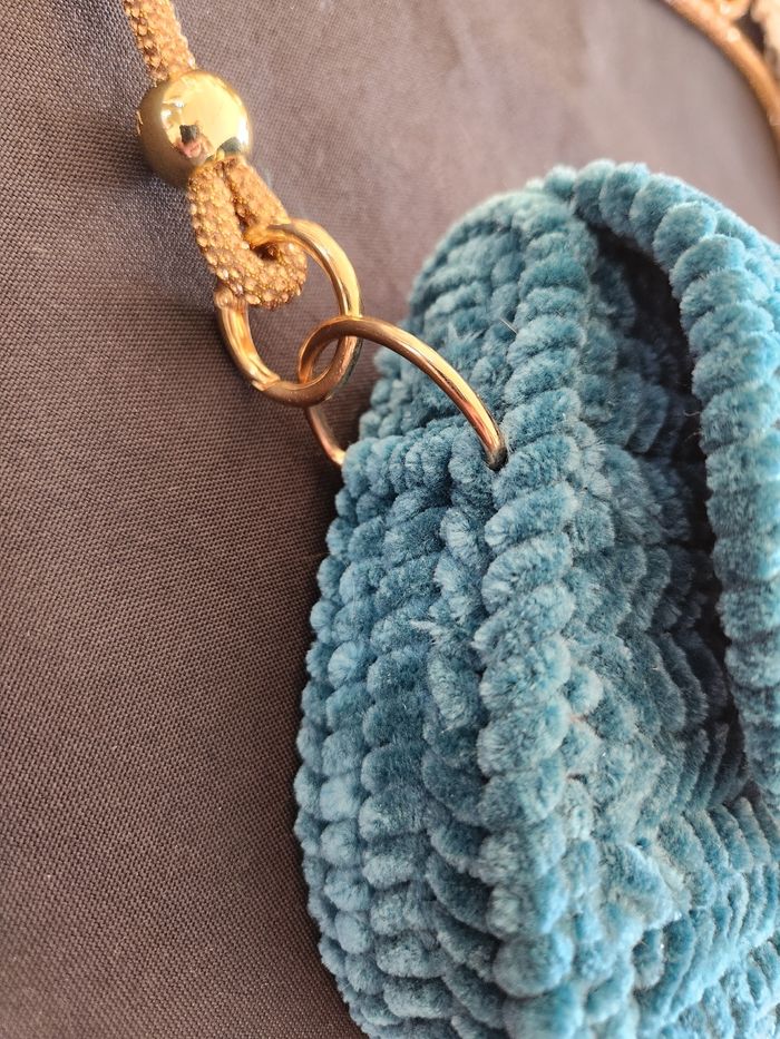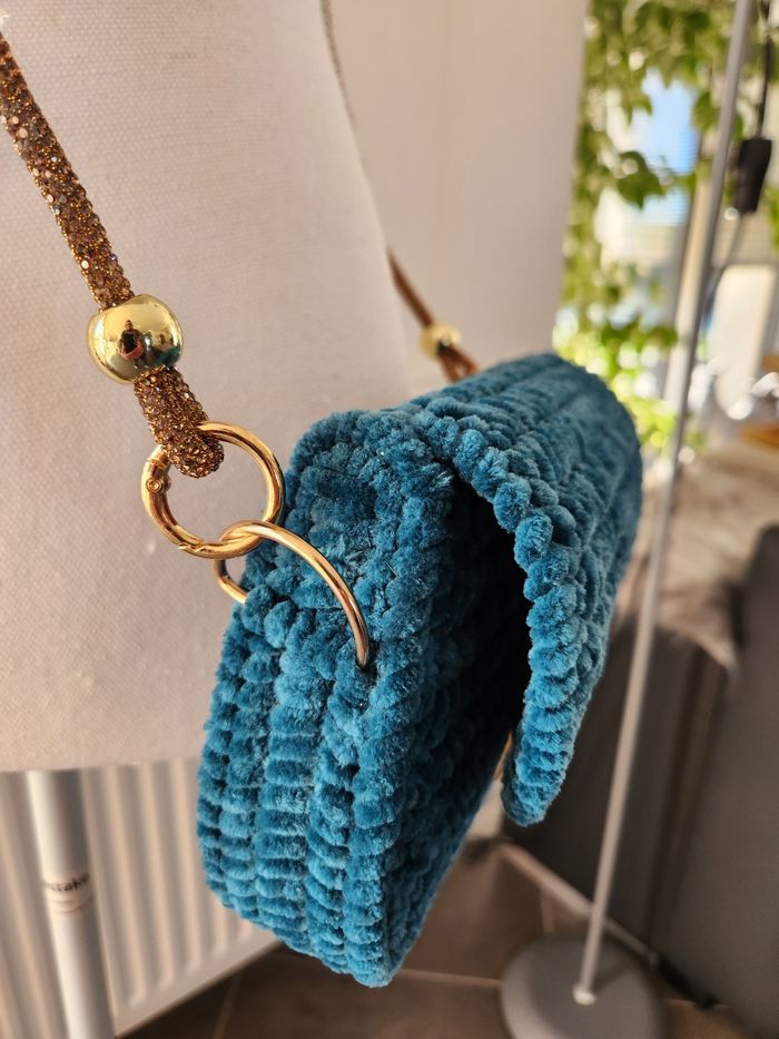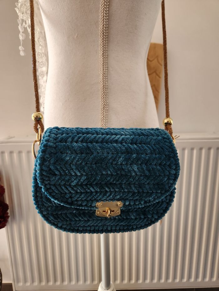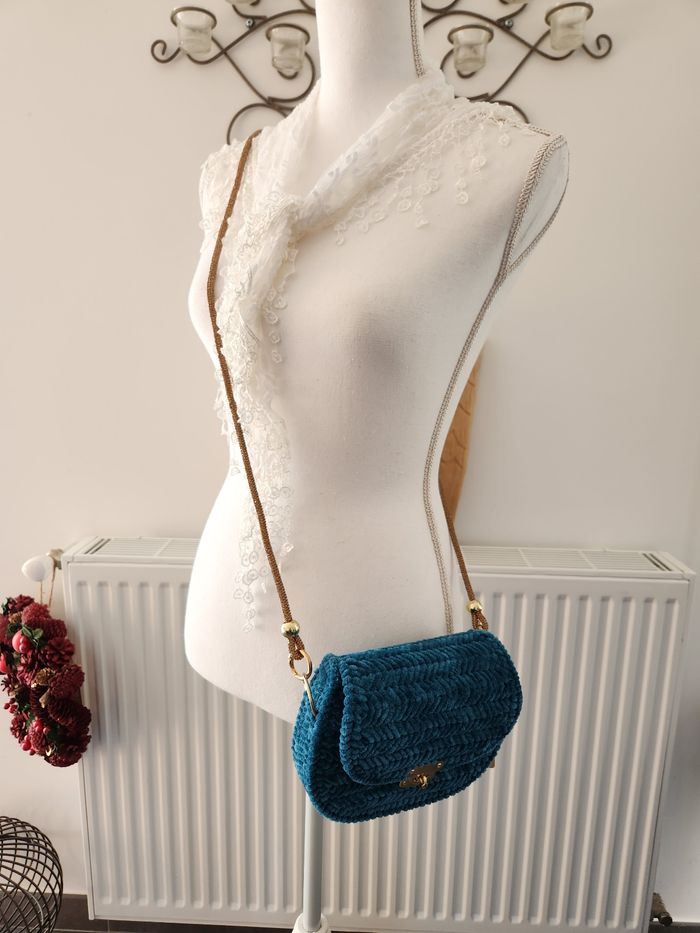 Sac fait main au design doux et élégant, idéal pour un usage quotidien. Sa matière laine chenille verte lui donne un style cocooning et tendance, facile à associer. Caractéristiques : • Type : sac bandoulière • Fermeture : fermoir doré • Bandoulière : dorée et strass, amovible • État : neuf 📏 Dimensions : 20 × 16 × 5 cm 📦 Convient pour transporter l’essentiel : téléphone, portefeuille, clés, petits accessoires. 📮 Envoi soigné et rapide.
