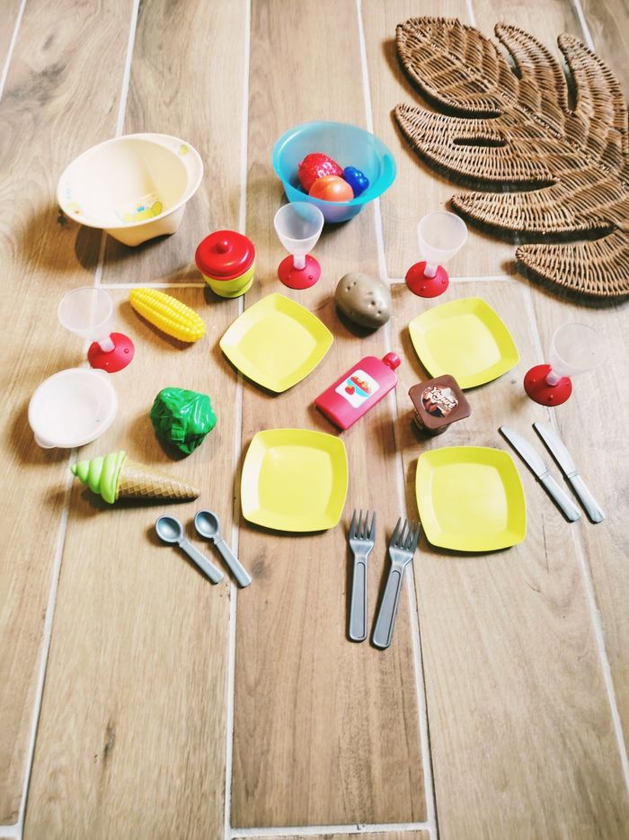 🥬Dinette lot service vaisselle avec légumes aliments en plastique marque Ecoiffier PL173