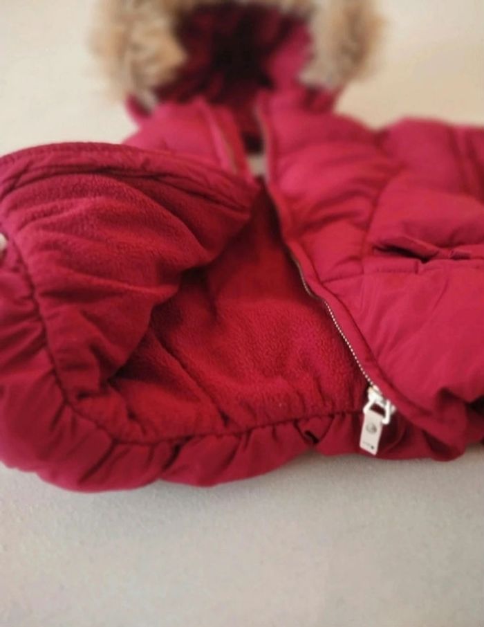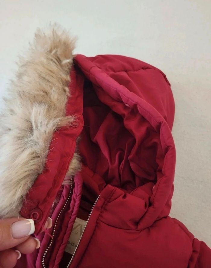 Je vends cette magnifique doudoune ZARA Baby de couleur bordeaux (lie-de-vin), idéale pour garder votre petite puce bien au chaud cet hiver ! 🧸 C'est une pièce de super qualité, à la fois stylée et très fonctionnelle : * Chaleur optimale : L'intérieur est entièrement doublé en polaire toute douce (corps et capuche). * Pratique : La capuche est bordée d'une jolie fausse fourrure. La fourrure est amovible grâce à des pressions (pratique pour le passage en machine !). * Détails : Fermeture éclair fluide, deux petites poches à l'avant et finitions élastiquées aux poignets pour ne pas laisser passer le froid. ✨ État : Comme neuve / Parfait état. Elle a été très peu portée et a toujours été entretenue avec soin. Pas de taches, pas de trous. 📏 Taille : 9-12 mois (80 cm) - Taille normalement chez Zara. 📦 Envoi rapide et soigné (le jour même ou le lendemain). 👉 Maison non-fumeur