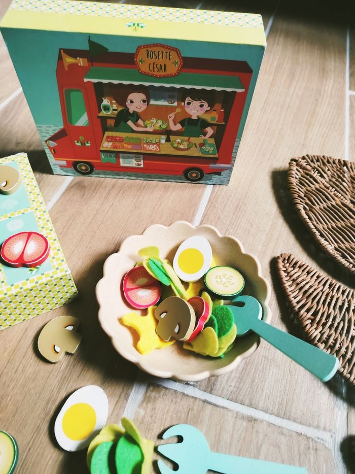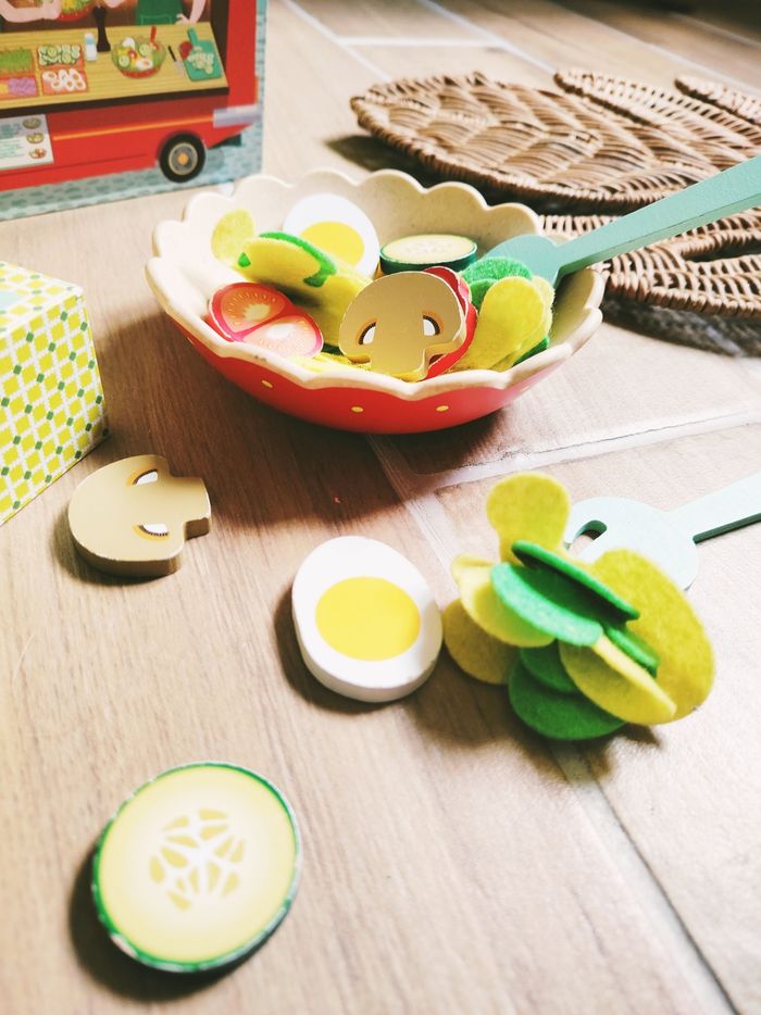 🥗Dinette - Coffret Rosette et César- salade avec divers légumes en bois et feutrine marque Djeco JB1454