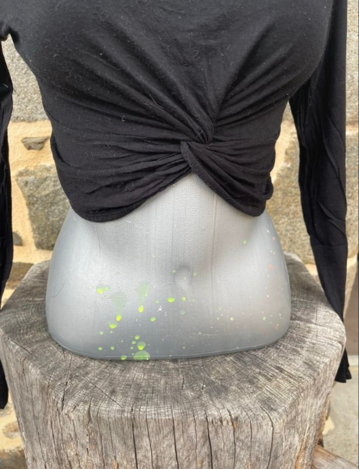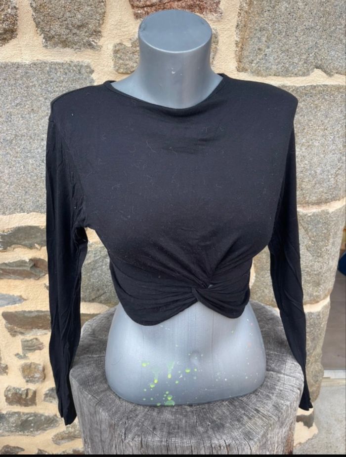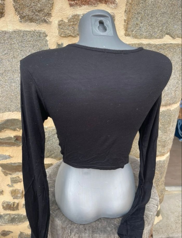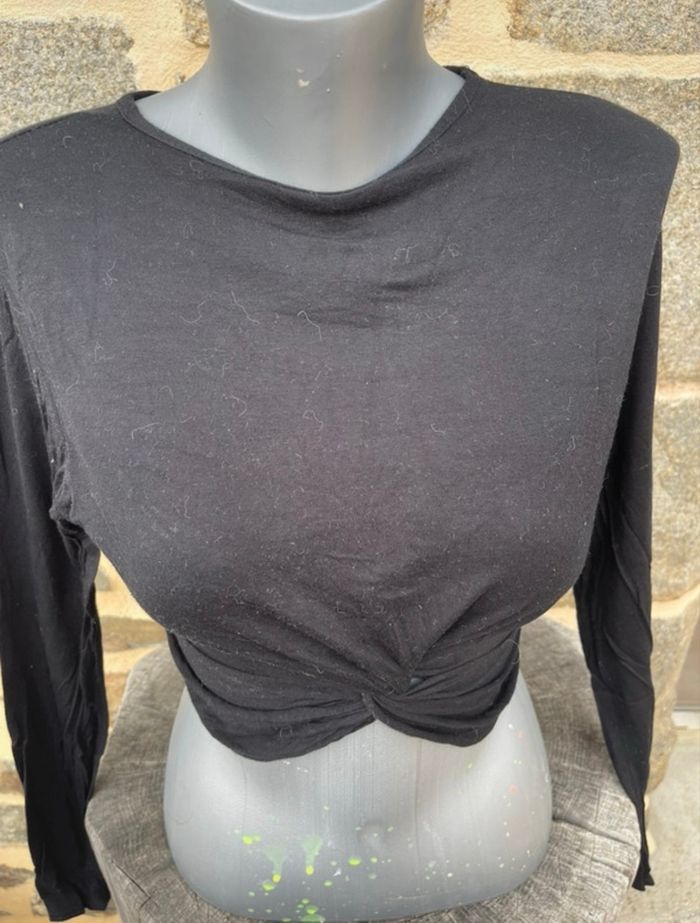 Teeshirt noir avec des manches longues nouées au niveaux de la taille. Crop top Taille 38 Pretty Little Thing