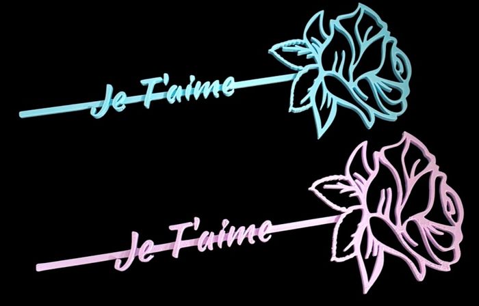 ❤️❤️❤️ SPECIAL SAINT -VALENTIN ❤️❤️❤️ 🤗 Création 3D 💥 💨 Magnifique rose inscription " Je T'aime " Couleur Violet clair ou bleu clair Matière : PLA ( plastique biosource , léger et résistant ) Dimensions : 21 cm ! 3€ l'unite