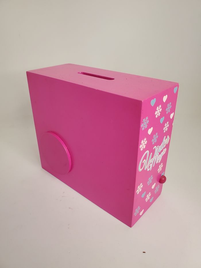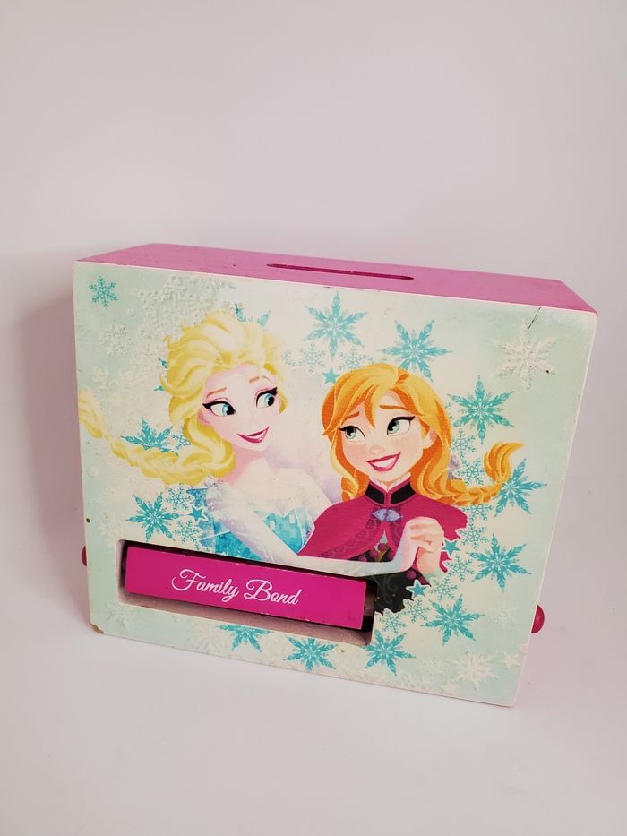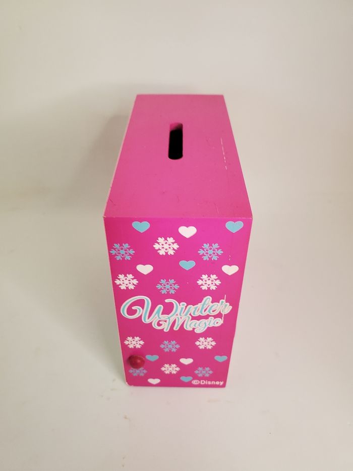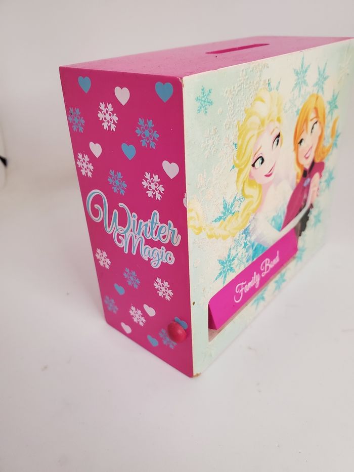 Tirelire pour fille en excellent état. Modèle La Reine des neiges de Disney. Matière bois.