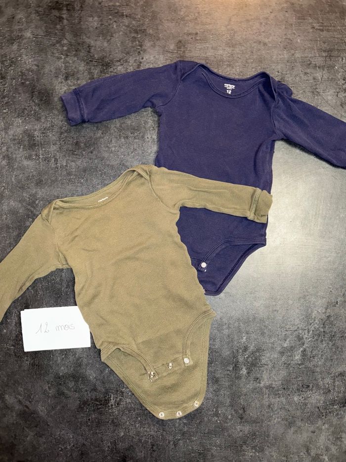 Lot de 2 bodies bébé avec attache par pressions à la couche Couleur bleu marine et vert Taille : 12 mois