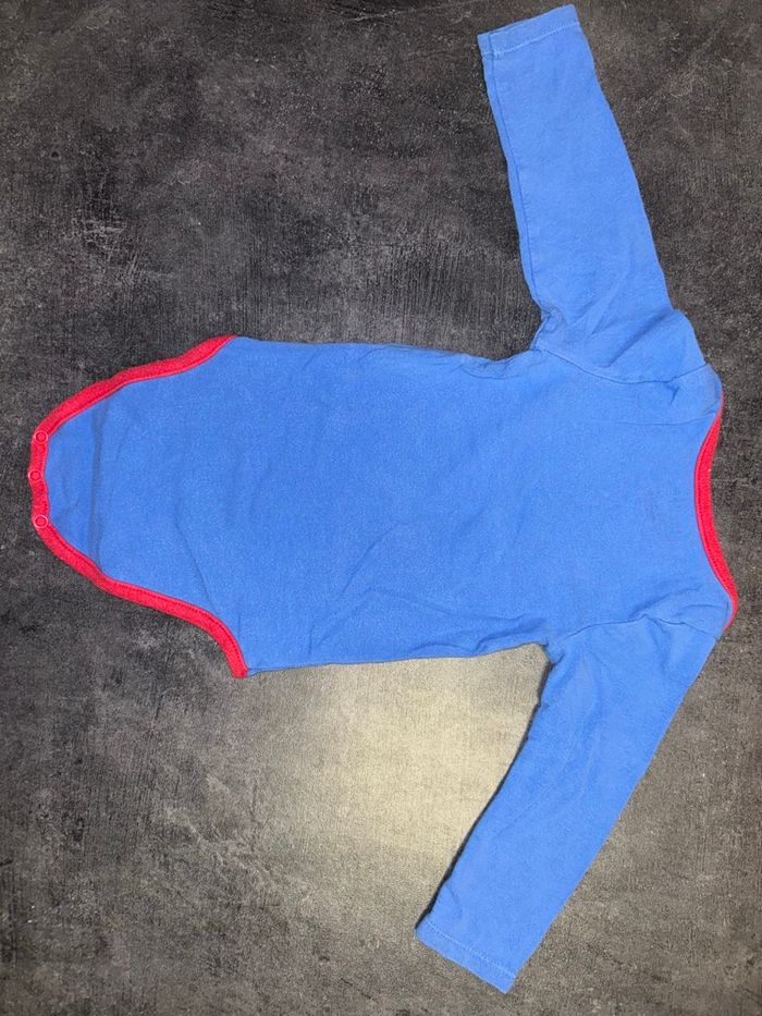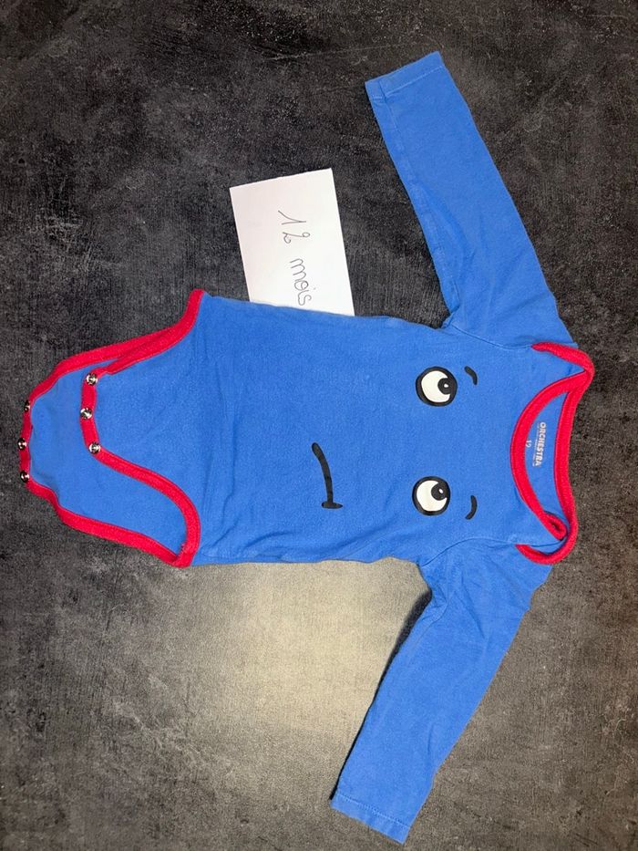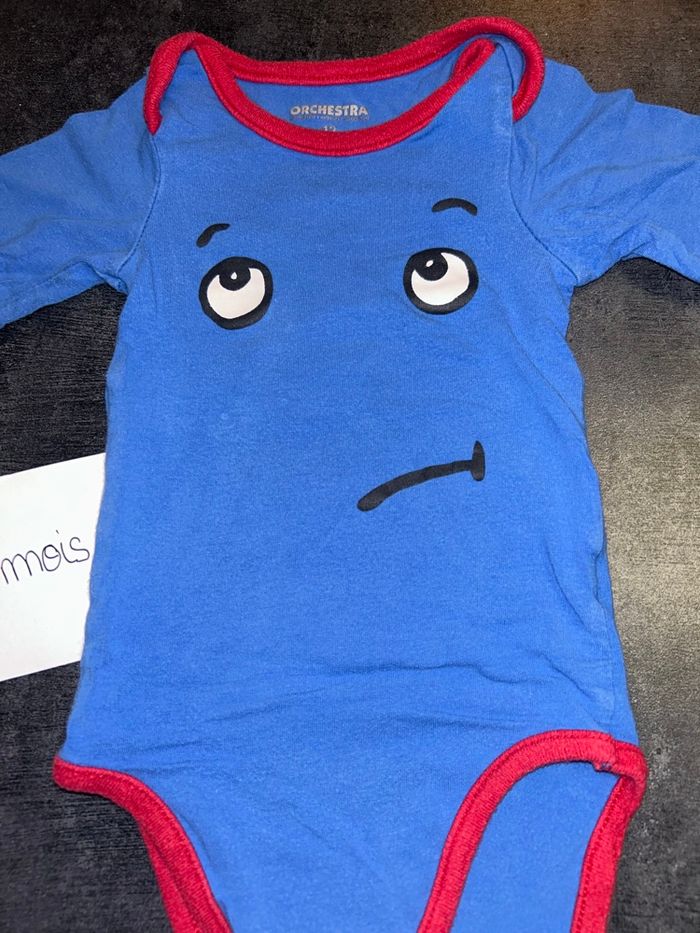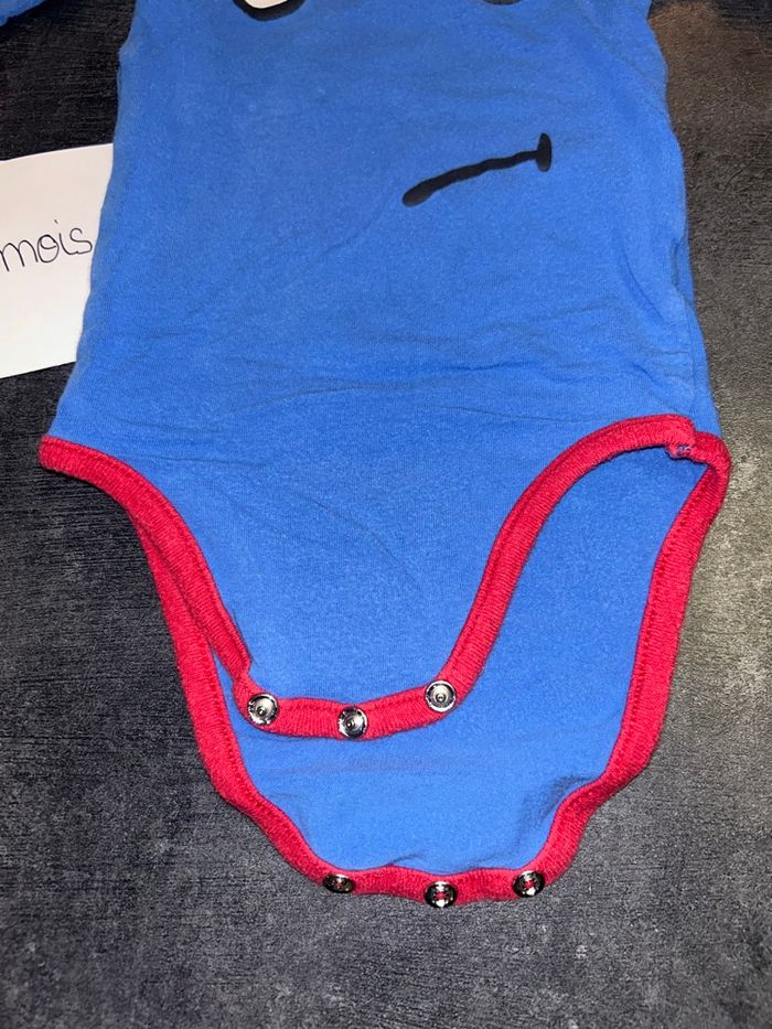 Body bébé avec attache par pressions à la couche Couleur bleu marine et rouge Motif visage Taille : 12 mois / 74 cm