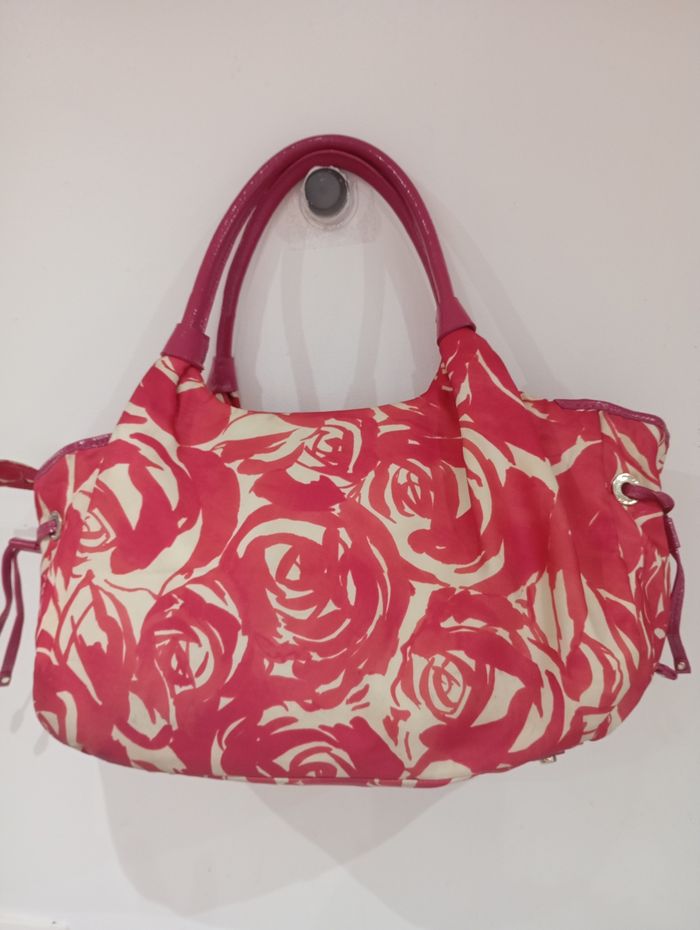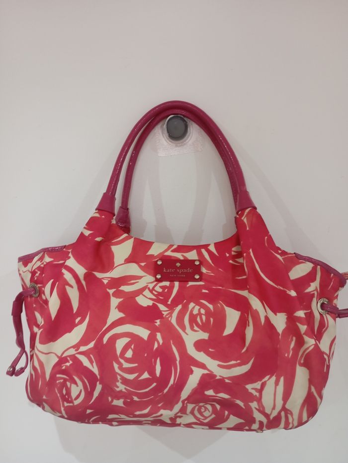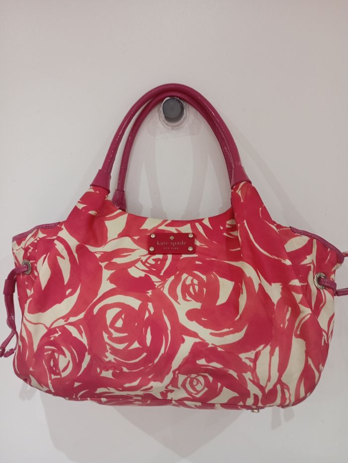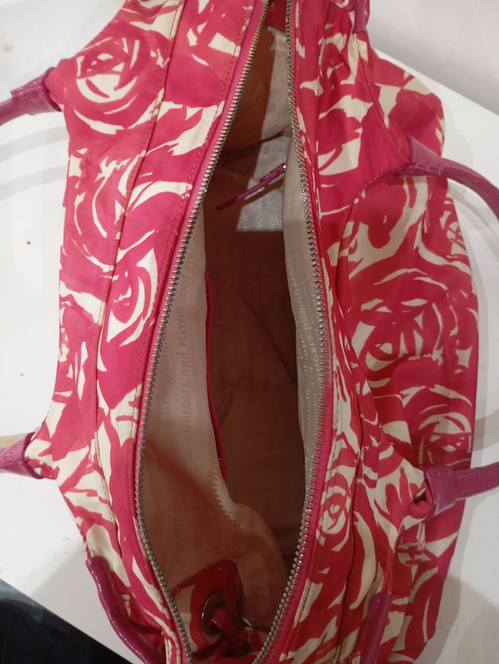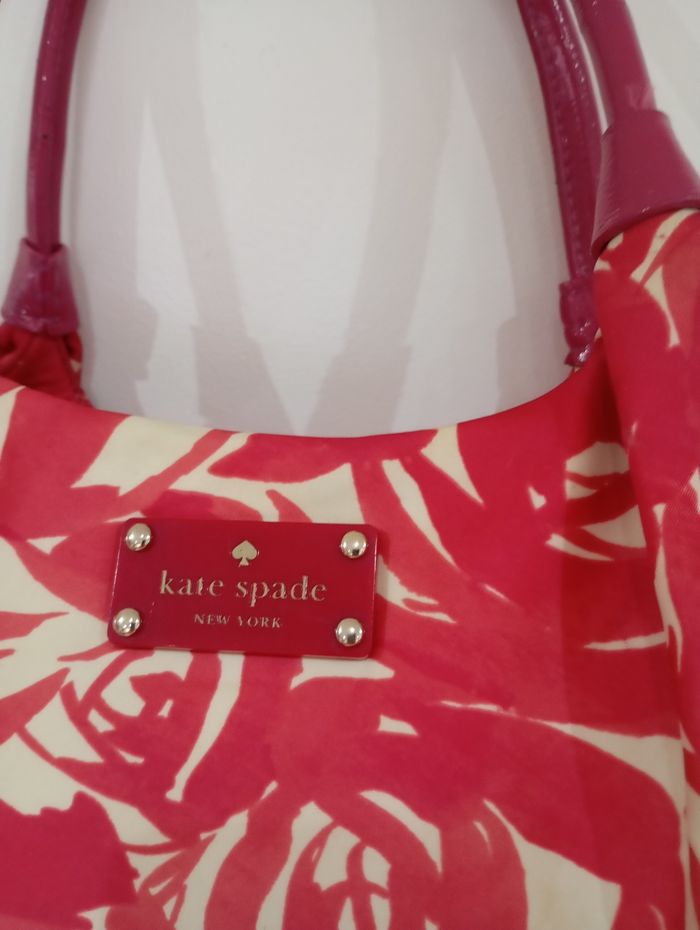 sac a main kate spade fleuri imperméable en bon etat. en nylon et cuir verni