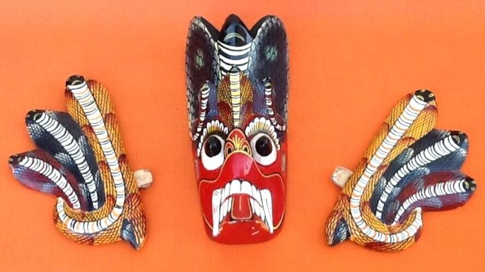Masque à suspendre  Sri Lanka " Cobra "  Bois sculpté polychrome  - photo numéro 1