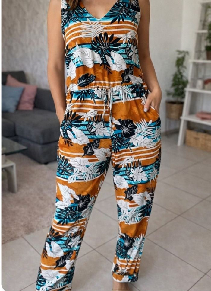Combinaison longue motif tropical Coupe fluide avec lien de serrage à la taille Taille indiquée L/XL mais taille plutôt L En très bon état Existe en une autre couleur sur mon profil