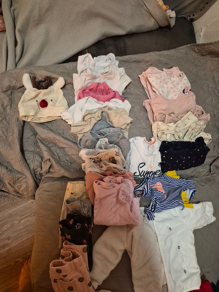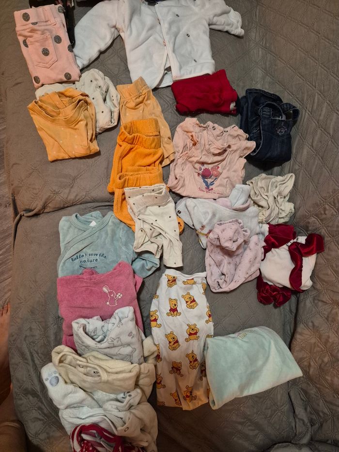Je vends 8 pyjamas 6 mois, 9 bodys 6 mois un maillot de bain, 6 pulls, 4 pantalons, 1 tee t-shirt, une veste chaude, 3 robes un collant. 2 short un pyjama pour cette été deux ensemble de pyjama avec short pour cette été.