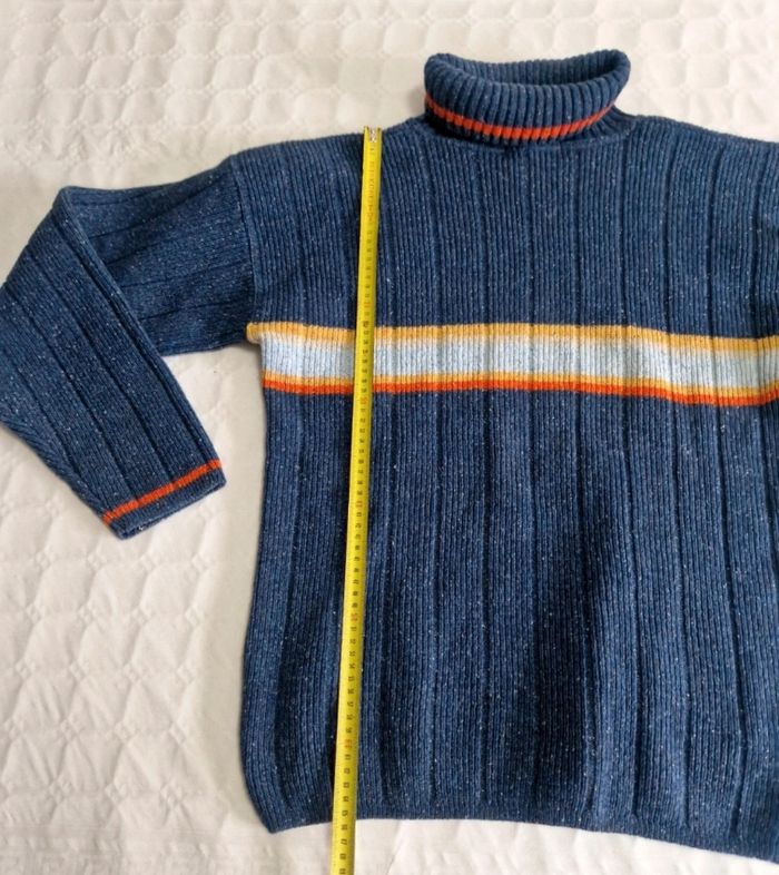​Bonjour. Style sobre, pro et efficace pour ce pull col roulé à rayures horizontales. Un basique efficace idéal pour un look décontracté durant la saison froide. ​Fiche technique : ​Style : Vintage / Outdoor ​Coupe : Ajustée ​Sexe : Homme ​Taille : M (conforme) ​Mesures & Matière : ​Épaule au bas : 65 cm environ ​Largeur aisselle à aisselle : 51 cm environ ​Composition : 45% Acrylique, 30% Laine, 20% Coton, 5% Autres fibres ​État : Très bon état. ​Hashtags : ​#homme #pullcolroule #mode #trend #tendance #quality #qualité #Vintage #Outdoor #Winter #Ushuaia #Gorpcore