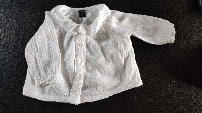 Ensemble fille en 1 mois Gilet + petite chemise en 1 mois marque Kiabi Les collants 1 mois marque Obaibi En excellent état maison non fumeur