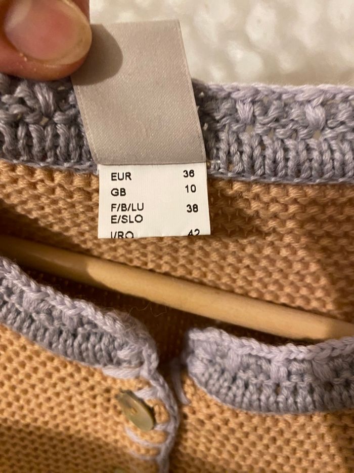Magnifique, cardigan. heine couleur, miel, neuf jamais porté taille M 38 légèrement extensible Chaud et doux ne pique pas Longueur. Dos 60 cm. Tour de poitrine, 97cm Laine et coton
