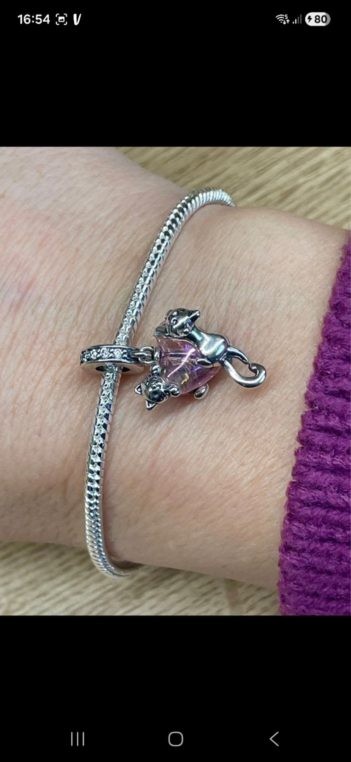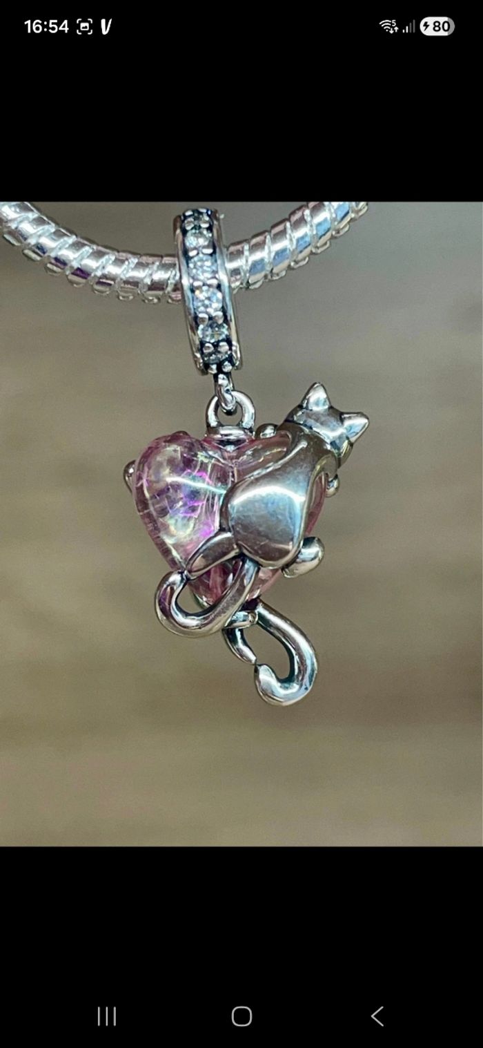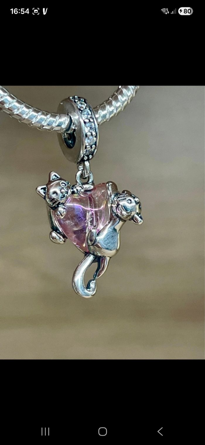 Adorable Charm coeur rose avec deux chatons accrochés En argent sterling 925 Conçu pour bracelet pandora Neuf Sera vendu dans une boîte cadeau. (le bracelet n'est pas à vendre )