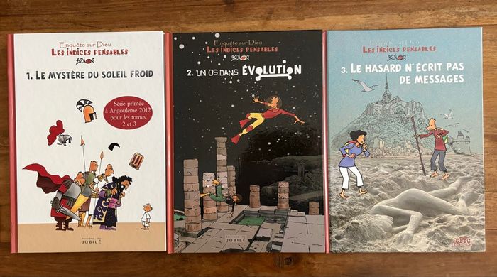 Vends BD les Indices Pensables - les enquêtes sur Dieu Tomes 1, 2 et 3 Possibilité de vente en lot au prix de 24 € Possibilité de vente à l’unité au prix de 9 € le livre État neuf