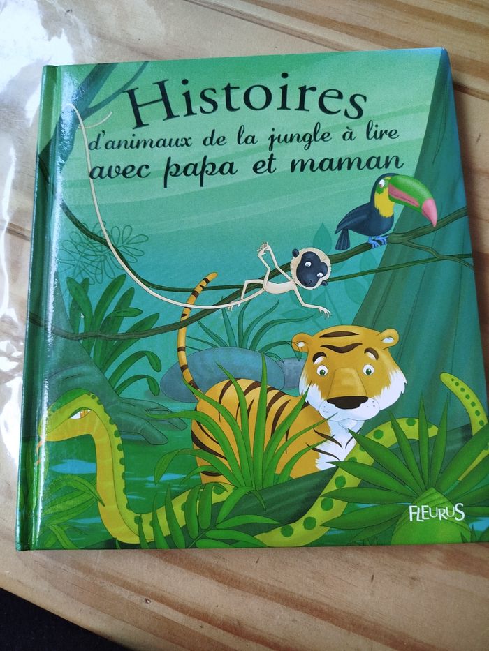 Livre histoire d'animaux de la jungle à lire avec papa et maman marque fleurus trois petites histoires