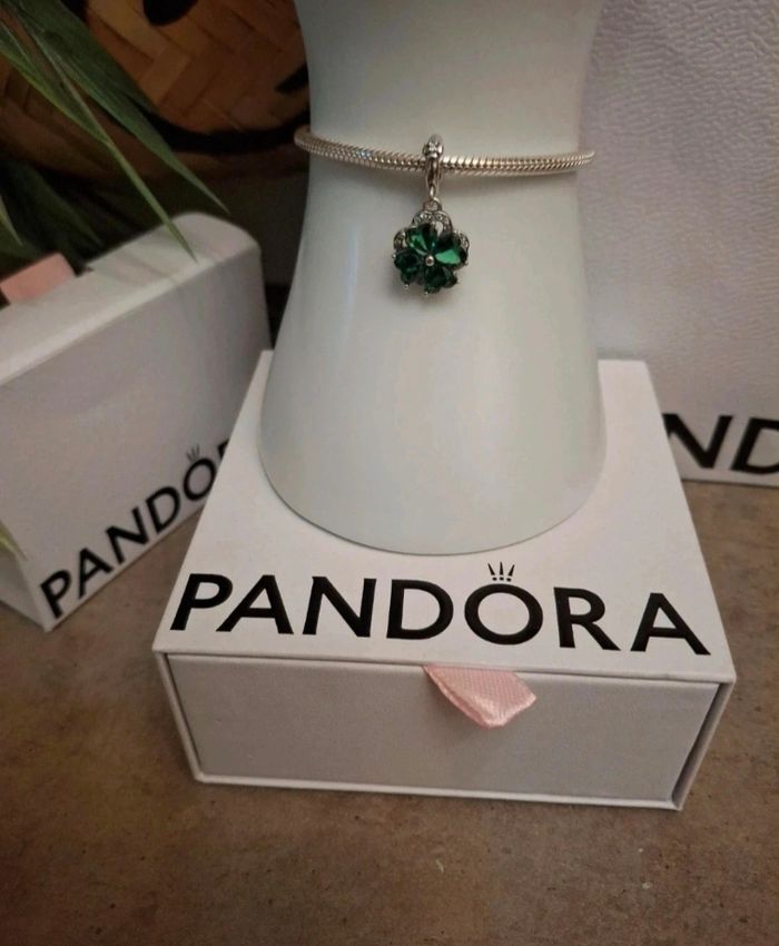Charm trèfle à quatre feuilles porte bonheur En argent sterling 925 Conçu pour bracelet pandora Neuf Sera vendu dans une boîte cadeau. (le bracelet n'est pas à vendre )