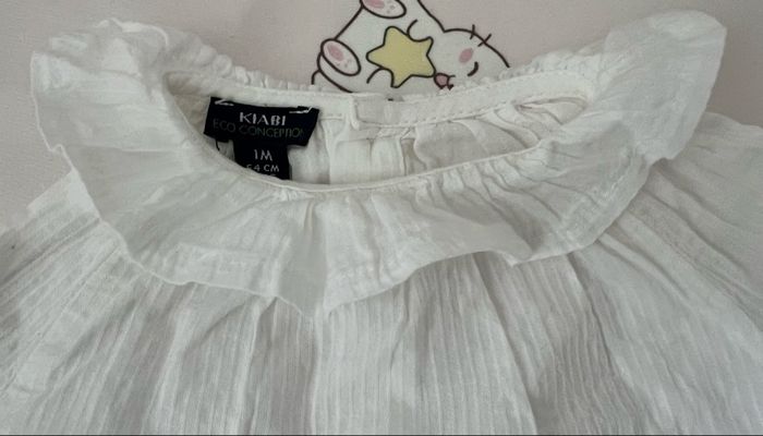 Chemisier blanc bébé fille taille 1 mois (54cm). Il a un col et des boutons dans le dos. En parfait état, porté qu’une seule fois.