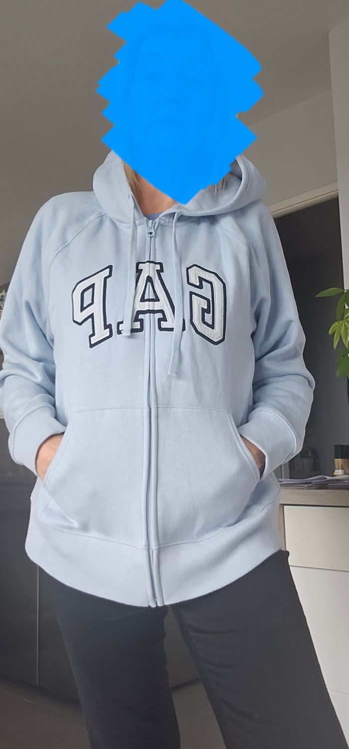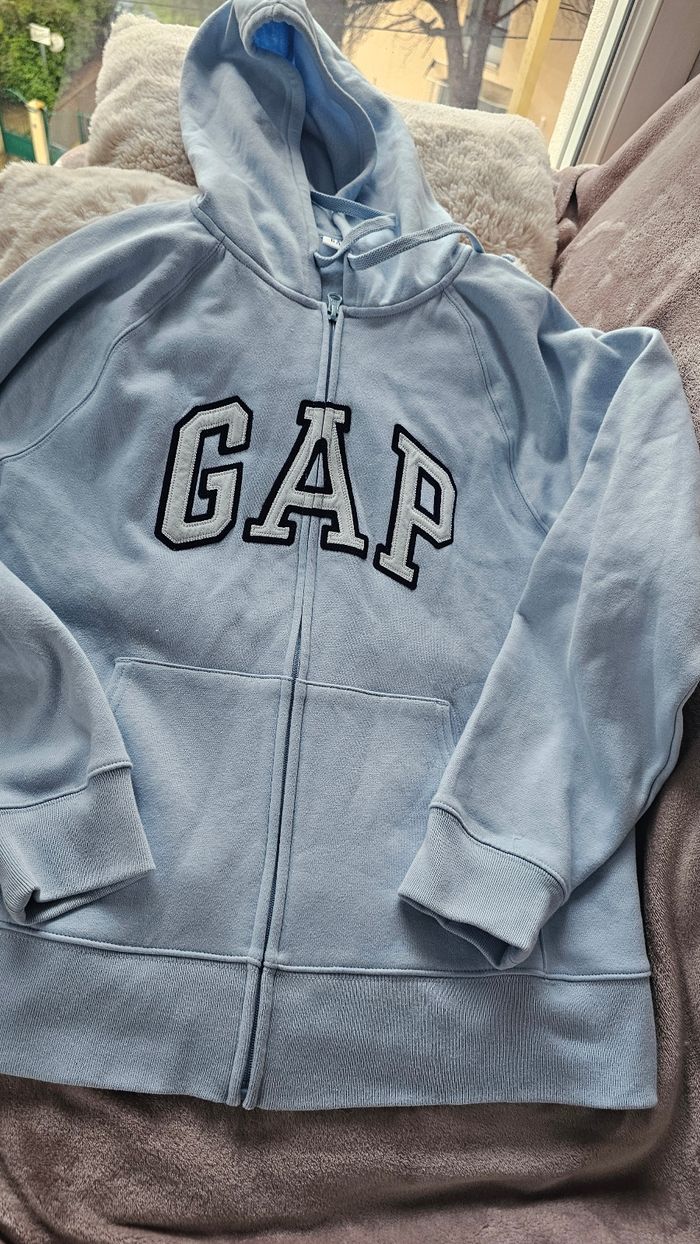 Neuf gilet bleu ciel capuche avec 2 poches Gap taille L matiere toute douce