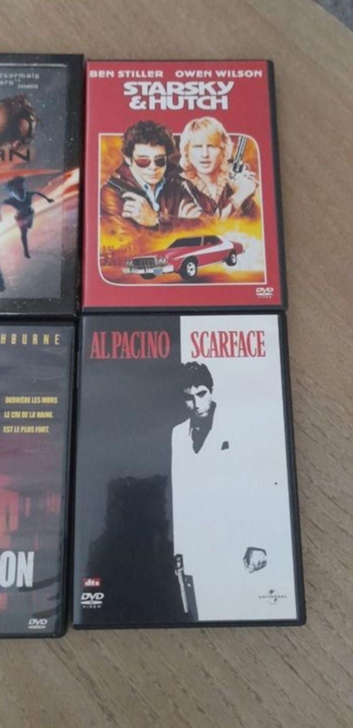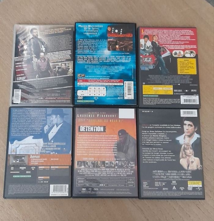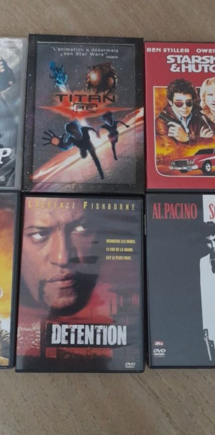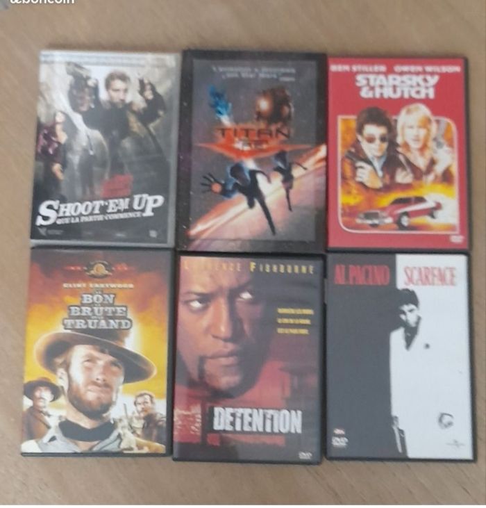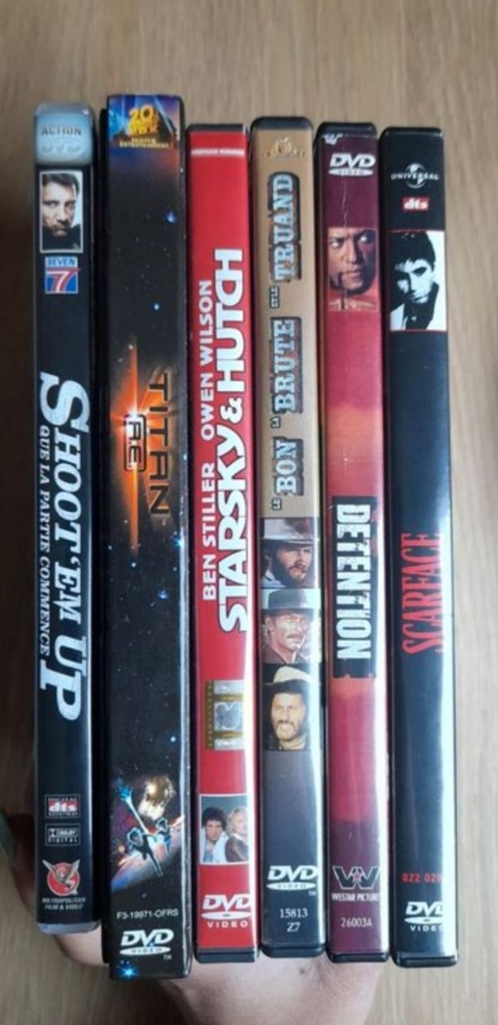 Lot de 6 DVD US / Action ☆ Le bon la brute et le truand ☆ Shoot EM Up (que la partie commence) ☆ Starsky & Hutch ☆ Détention ☆ Titan A.E ☆ Scarface Ils fonctionnent tous parfaitement. Lot au prix de 10€ soit un DVD offert. #LIVRESDVD_vanesslavaness