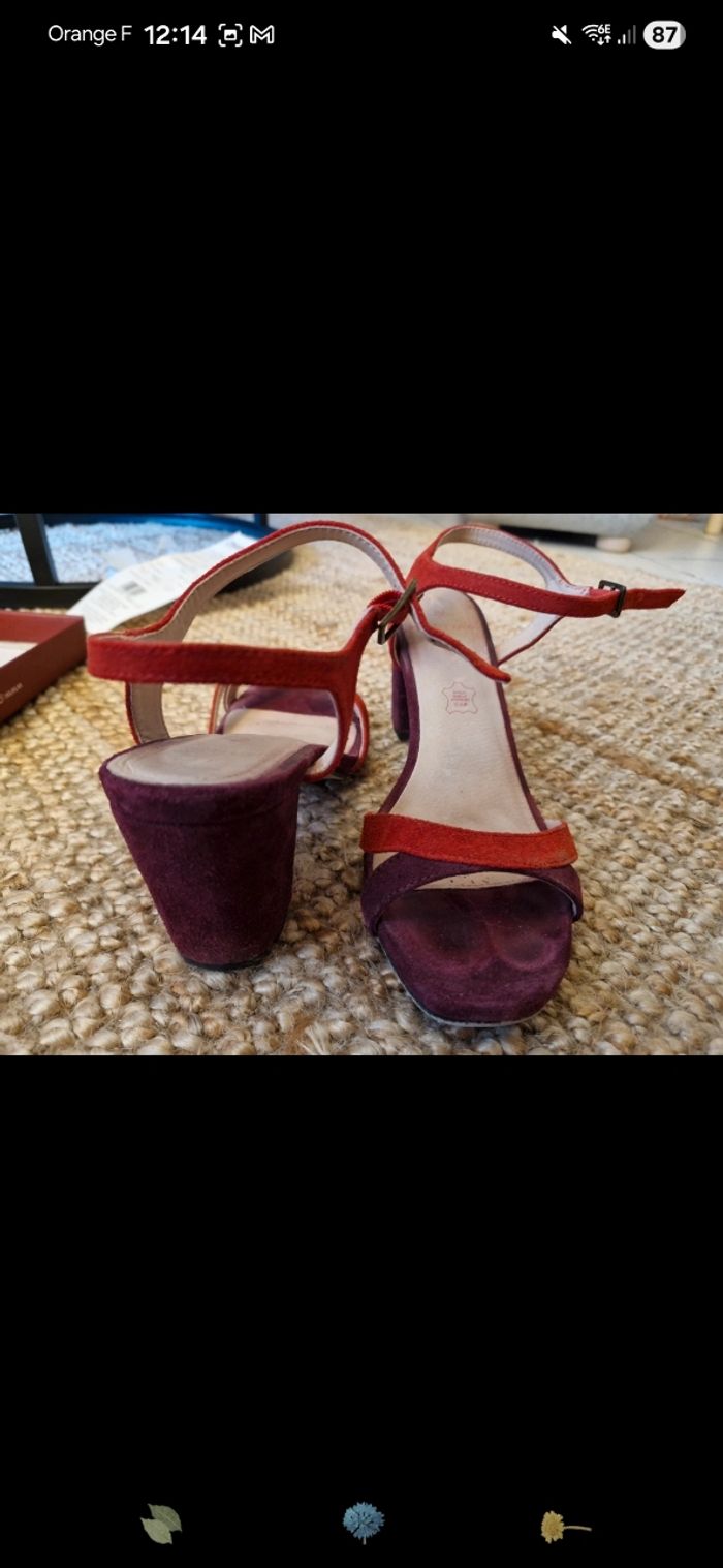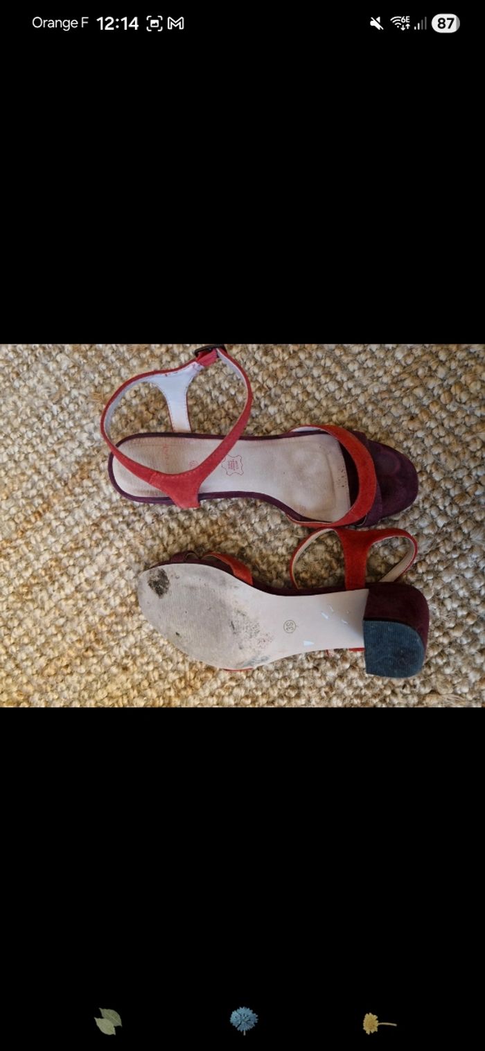 Chaussure à talon, naf naf , talon de 8,5 cm . Violet et terra cota. Taille 39.