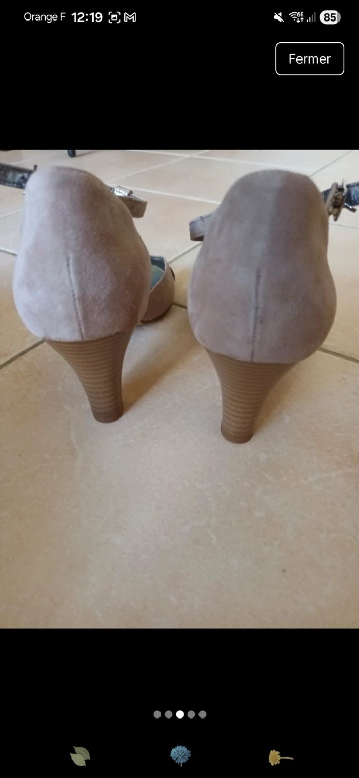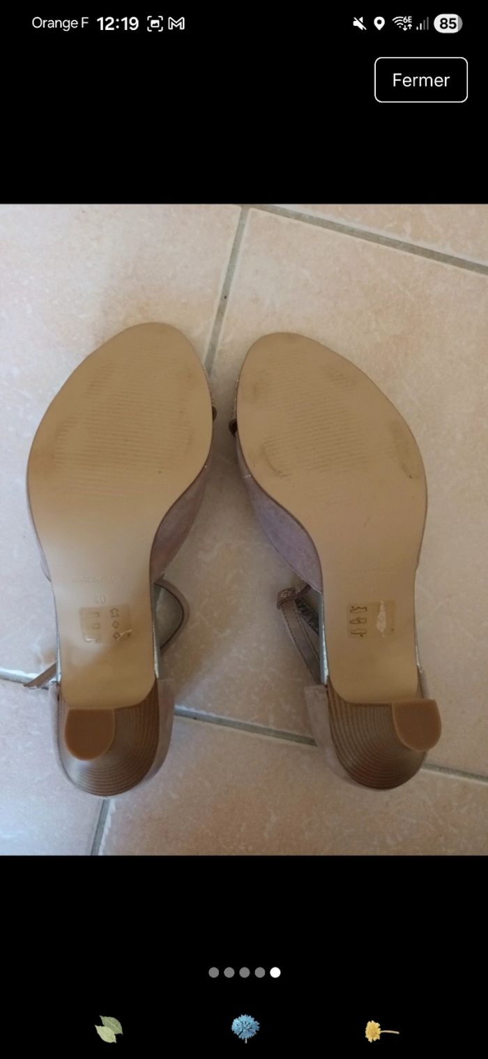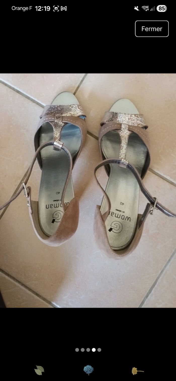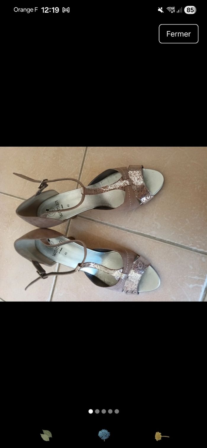 Chaussures à talon, taupe et argenté. Jamais portées. GÉMO Taille 40.