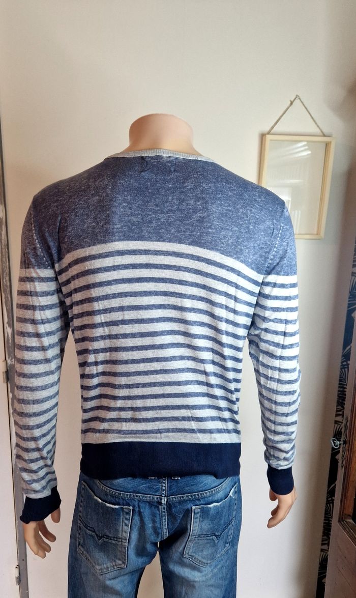 Pull Homme Guess Bleu givré chiné Marinière taille S décontracté
