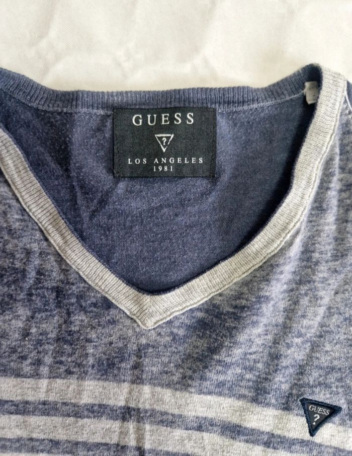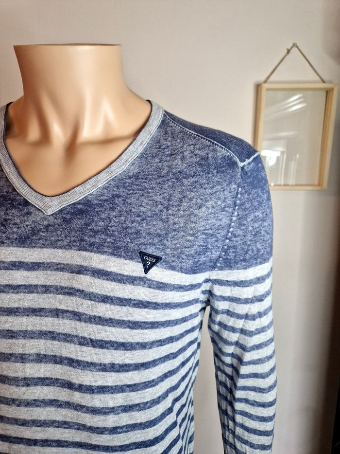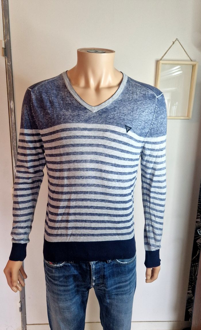 Pull Homme Guess Bleu givré chiné Marinière taille S décontracté - photo numéro 1