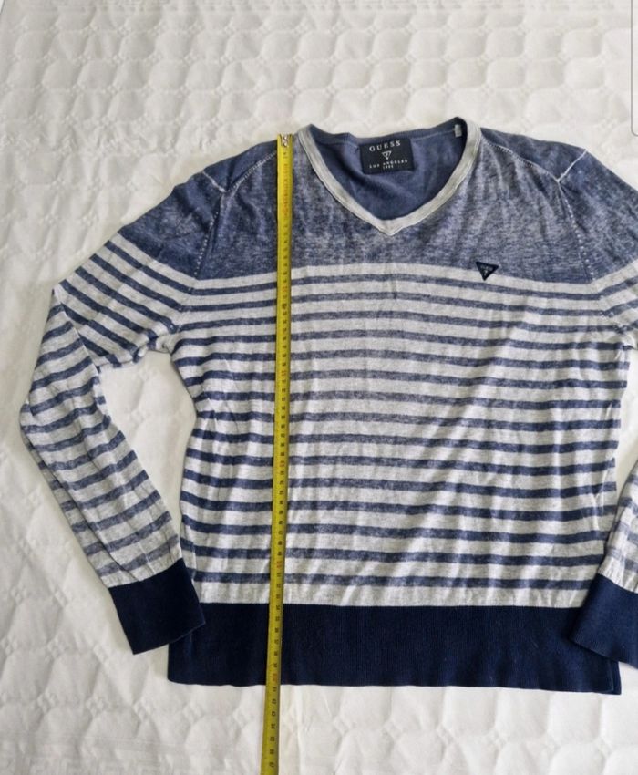 Pull Homme Guess Bleu givré chiné Marinière taille S décontracté - photo numéro 7