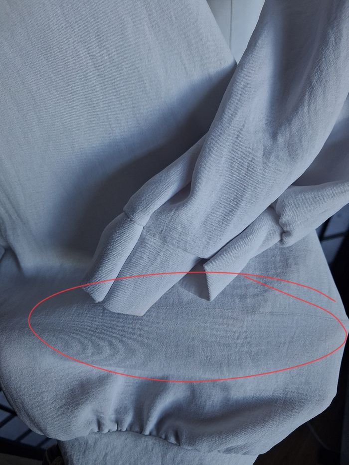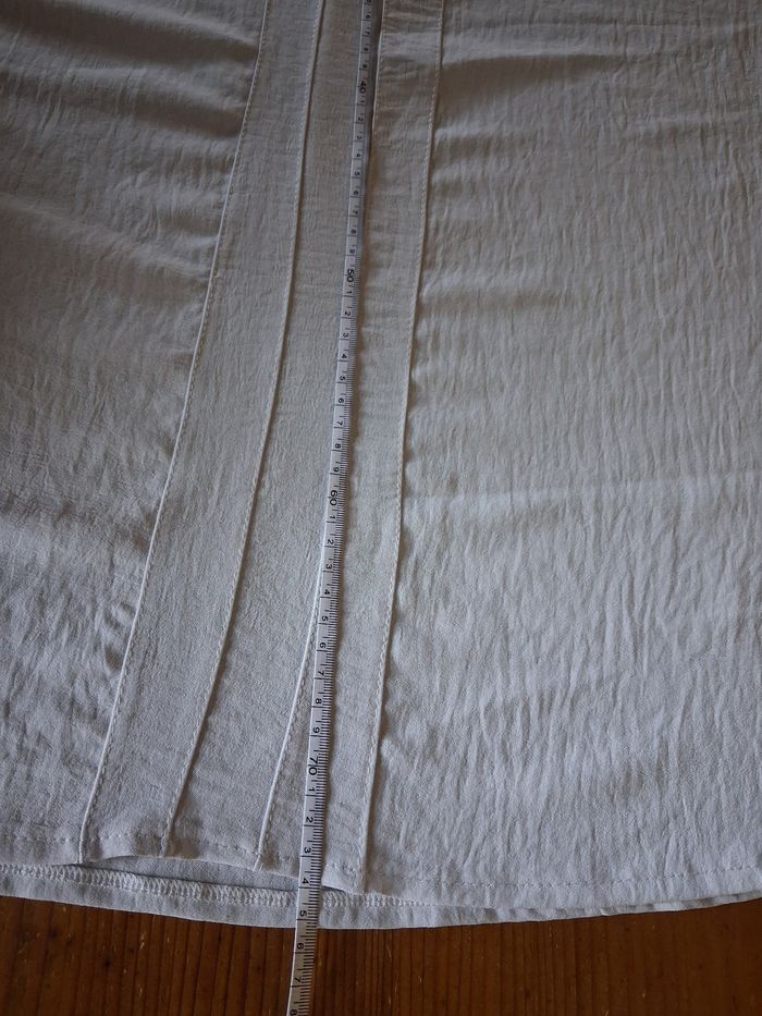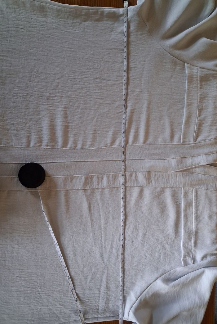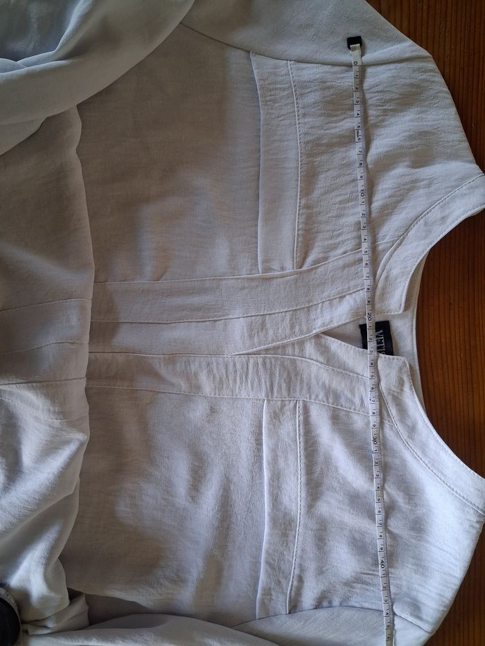 Blouse blanche en bon état mais quelques petits défauts (Voir photos, manche et très légères tâches) Taille des mensurations en photos Photo du vêtement porté impossible Épaules : 44 cm Sous aisselles : 65 cm Longueur :75 cm