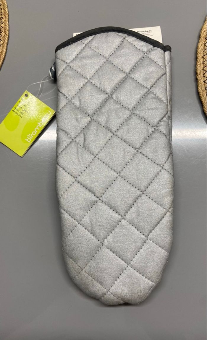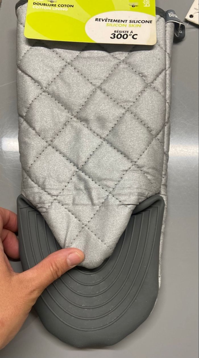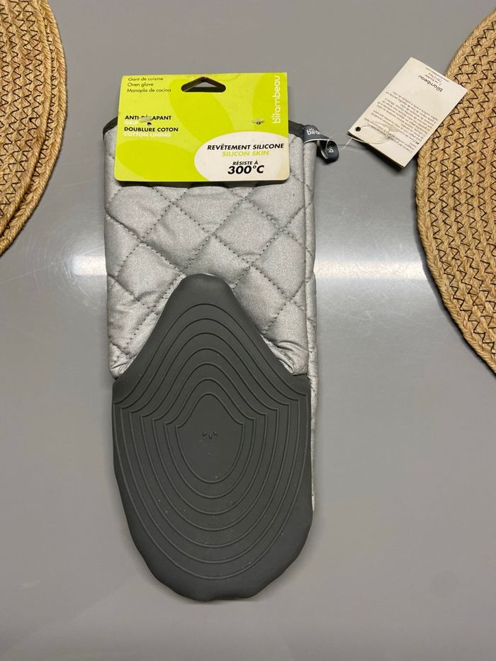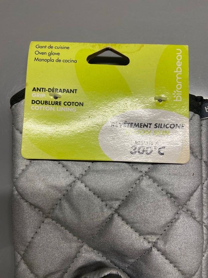 gant de cuisine antidérapant XXL neuf Idéal pour droitier et gaucher, protège également l'avant-bras. Ce gant permettra une meilleure prise de vos plats en métaux, verres ou céramiques. Très résistant à la chaleur jusqu’à 250°C. Couleur : Argenté 30 cm Partie silicone