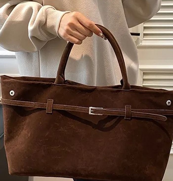 Sac fourre-tout en flanelle marron tendance - photo numéro 1