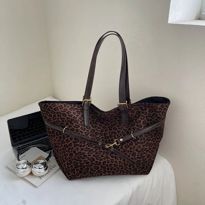 Sac fourre-tout en suédine imprimé léopard tendance - photo numéro 1